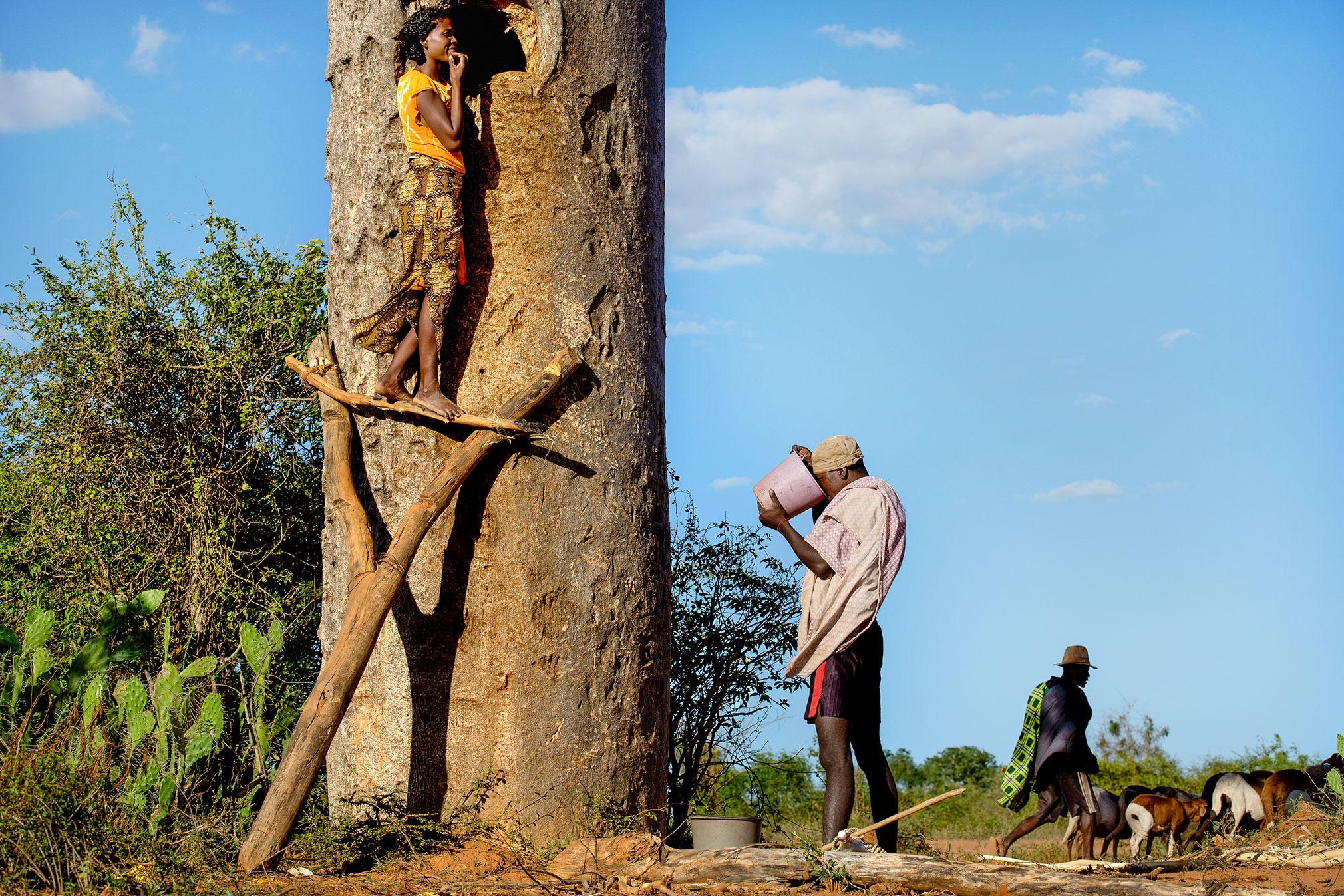 Men baobabens kanske viktigaste roll är som vattenreservoar. Ett stort exemplar kan suga upp och lagra upp till 120 000 liter vatten, som djur och människor kan dricka av under torra perioder.