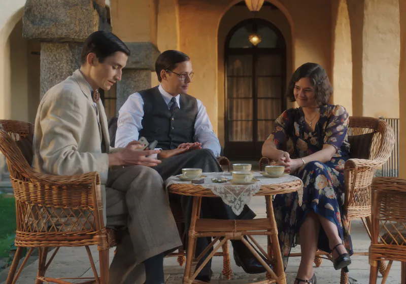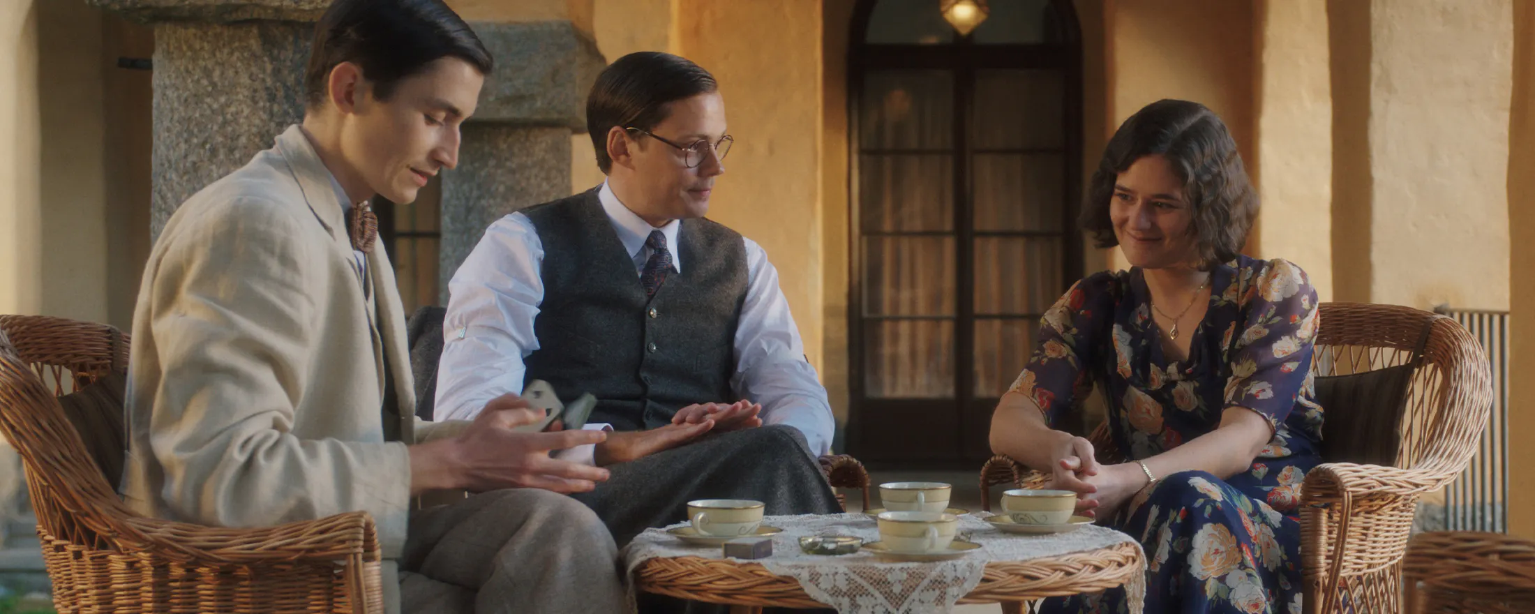 Gustav Lindh som Olof Lagercrantz, Bill Skarsgård som Sven Stolpe och Asta Kamma August som Karin Stolpe i filmen Bränn alla mina brev. // Foto: Stellan Runge