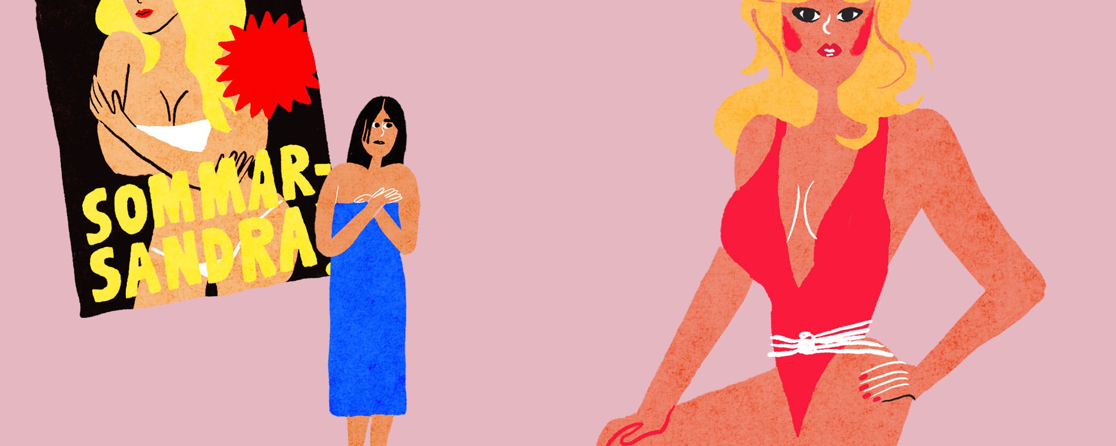 ”Nämen! Det här var oväntat!” Jag stelnar till som en glasspinne då jag identifierar rösten från klipporna som en tidigare kollega, tillika populär komiker. Samlar tankarna och trycker upp min tappade haka. Vänder mig om, tillgjort uppsluppen och sommarfri, återförening och glädje, så himla lustigt att träffa på dig här, långt från huvudstadens radiokorridorer. I några minuter håller jag god min, i själva verket tänker jag bara på min urringning och håret under armarna. Är han typen som fått för sig att tjejer är födda släta? Är han en sådan som blir provocerad av mörka strån? Noterar han dem ens? Hur kan jag vara så påverkad av kvardröjande 80-talsrubriker att de än i dag stör min koncentration under ett vanligt samtal? Varför tänker jag på almanackor med en avklädd Miss Juli? Varför kallas barmen för … behag?