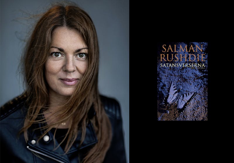 När Satansverserna kom på svenska hade mitt tonåriga jag just gjort raketkarriär från nattligt tidningsbud till biografkassörska och sedan (drömmen!) bokhandelsbiträde. Jag råkade just då jobba ensam i Bonniers lilla personalbokhandel på Torsgatan i Stockholm, strängeligen tillsagd att inte lägga fram denna dynamit till roman på synlig plats i butiken, det var att utmana ödet för det just då explicit hotade förlaget. Jag skulle förvara boken under disk och bara plocka fram den när någon lutade sig fram över kassan och viskande frågade efter den. Vilket väldigt många gjorde. Satansverserna sålde som smör. Utanför dörrarna stod beväpnade vakter, att förlaget var hotat ingick i själva fatwan genom en formulering om att även de som arbetade med boken hade förverkat sin rätt att leva. Det måste rimligtvis ha gällt även mig som krängde den. Abbe Bonnier Jr hade nyligen gått bort och hans porträtt, flankerat av två tända ljus, stod i butiksfönstret och förstärkte den surrealistiska stämningen.