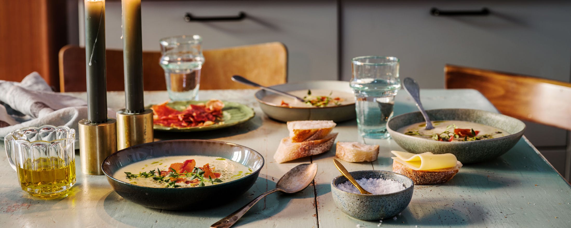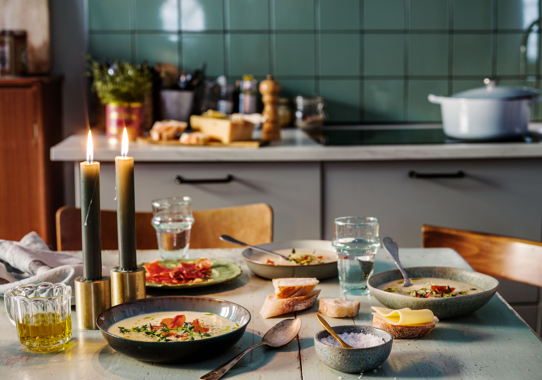 Vi tre behövde hitta varandra i en situation som var ny, svår och turbulent. Ganska snart uppkom en rutin i den där ettan, något vi kallade ”soppmys”. Två gånger i veckan åt vi soppa till middag, och vi turades om att bestämma vilken slags soppa det skulle vara. Vi gick och handlade tillsammans, hjälptes åt i köket och satt sedan och pratade om allt möjligt vid middagsbordet, där det alltid fanns levande ljus. Att samlas kring mat är ju klassiskt.