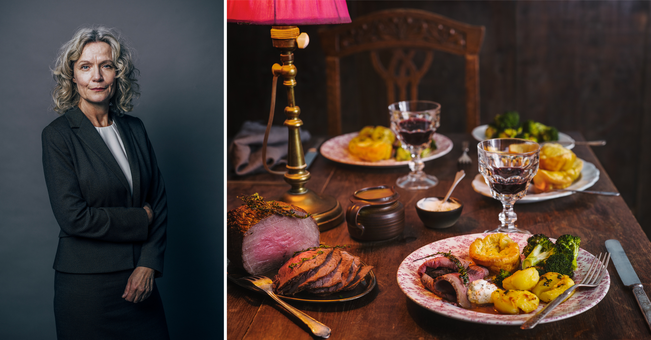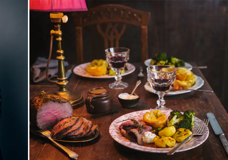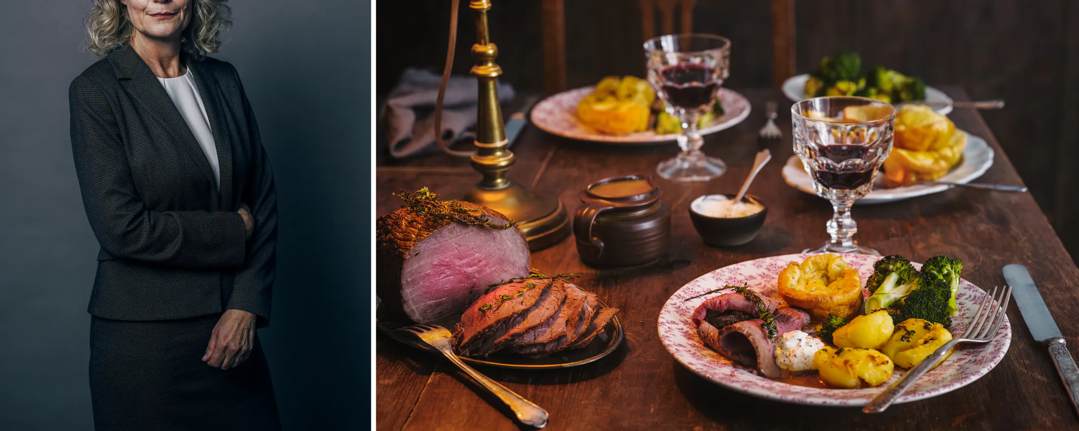 Vi åt rostbiff med ugnsstekt potatis, yorkshirepudding, tunn brun skysås och sönderkokt broccoli. Kanske serverade de billigt rött vin i karaffer. Det blev alltid efterrätt. Spotted dick var en klassiker.”