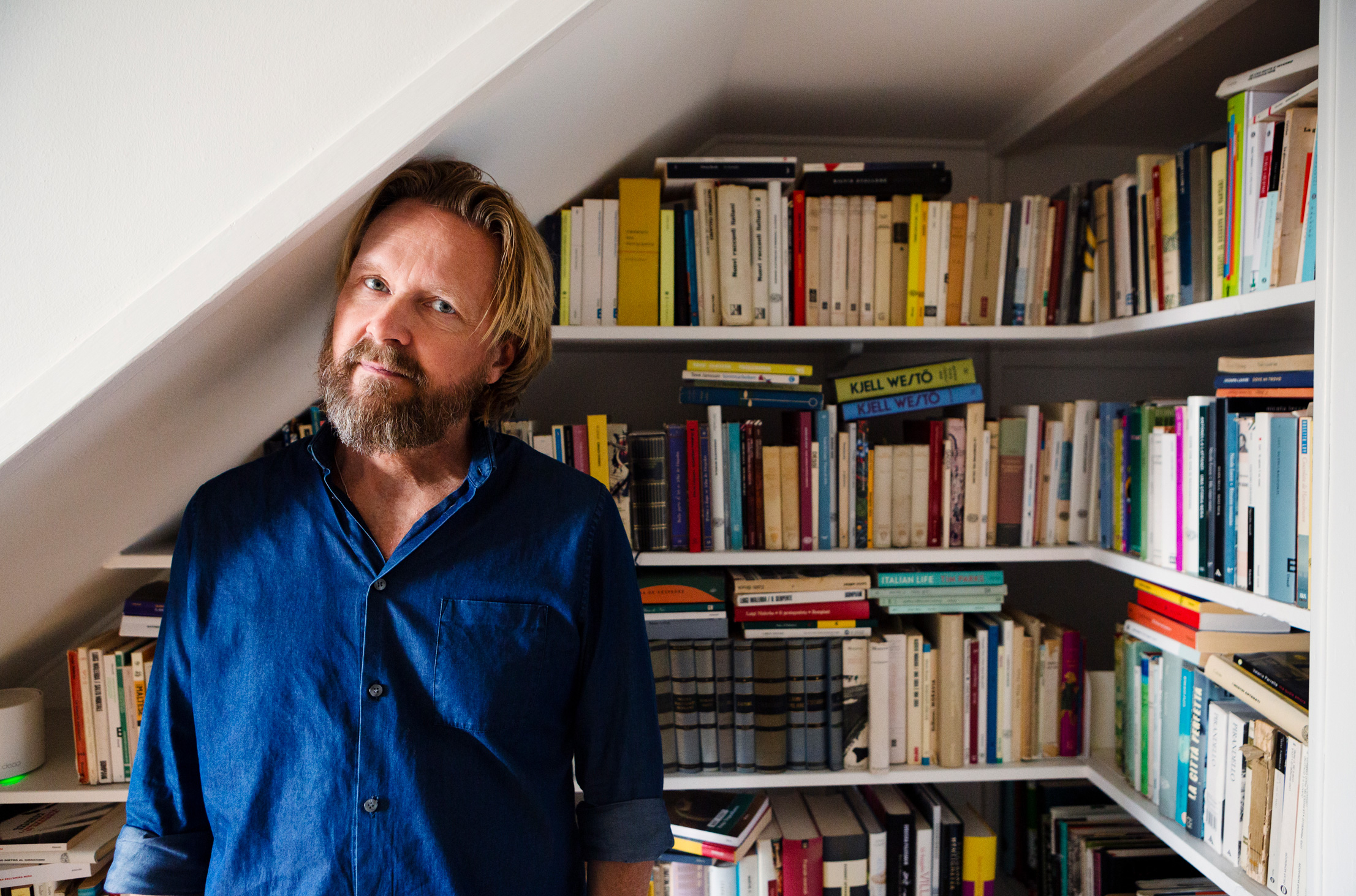 Många, tänker man. Från golv till tak i hela trevåningshuset. Har man, som Björn Wiman, arbetat med böcker i ett kvarts århundrade – ja, då borde man ha en imponerande bokhyllesamling.