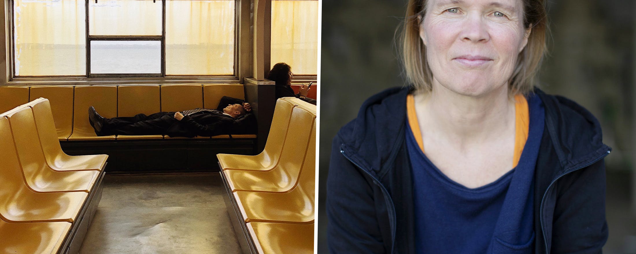 Han viftade med handen i luften mellan oss. Jag tänkte på mina 44 minuter slummer i jourrummets soffa och på tusentals andra soffor. Flygplansstolar. Tåg, baksäten, landsortsbussar. Föreläsningssalar, föräldramöten, teaterföreställningar. Och att jag inte sov för att bli piggare, utan sov för att, ja, sova. Jag trodde att jag ansamlade mig inför något. Jag trodde att en annan dag skulle vara min vakna dag.