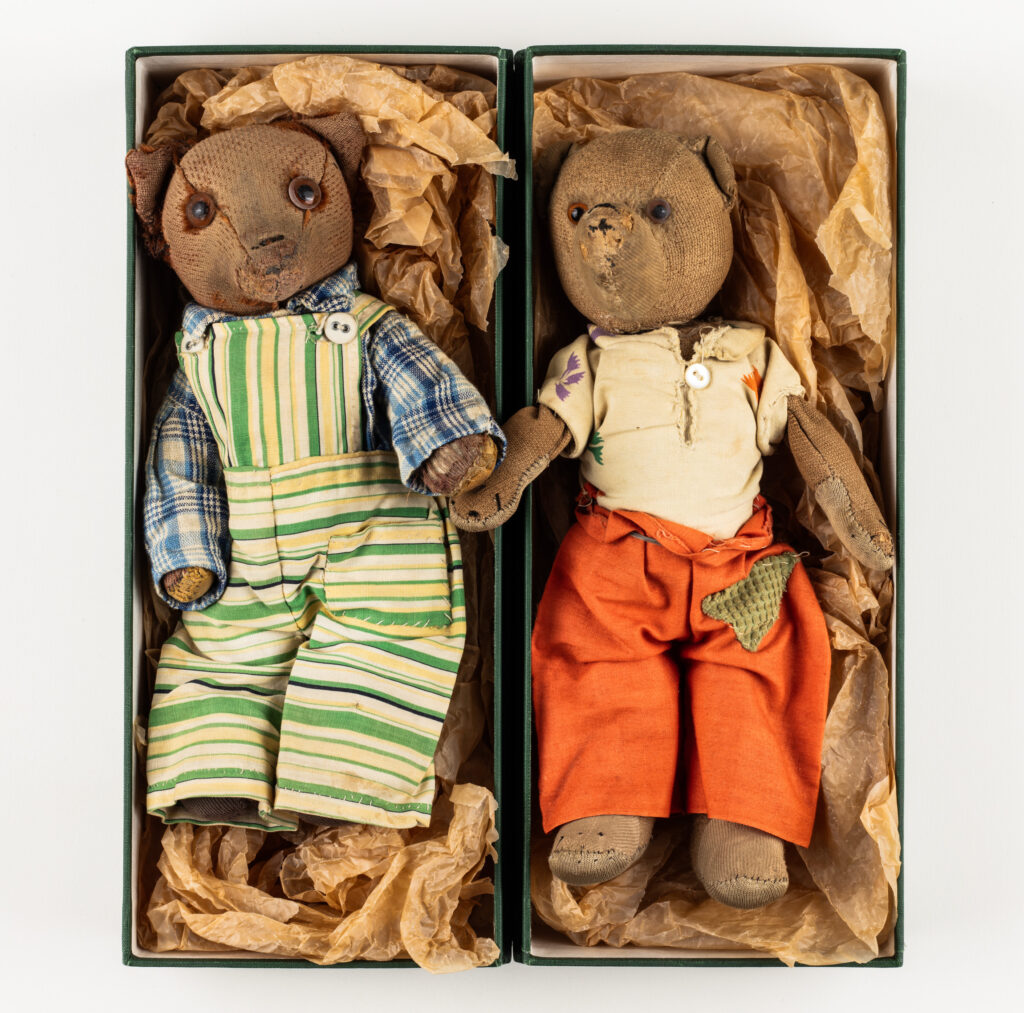 Där vilar de nerbäddade i var sin separat ask, dockorna och nallarna från barnromanen Nalleresan. Precis som A. A. Milnes kvarlåtenskap omfattar sonen Christopher Robins leksaksdjur, som stått modell för figurerna i Nalle Puh (1926), har Svenskfinland sina alldeles egna originalnallar. De finns i Solveig von Schoultz arkiv vid Svenska litteratursällskapet i Finland jämte manuskripten till Nalleresan, som utkom i Sverige 1944, och året därpå i Finland. Den barnlitterära utgivningen på svenska i Finland var under denna tid sparsam, det kunde röra sig om ett par titlar per år. För bildberättandet står ingen mindre än Tove Jansson, som vid tidpunkten ivrigt jagade illustrationsuppdrag. Ännu var hon inte den gigant hon skulle bli. Hon hade gett ut en barnbok under pseudonymen Vera Haji, men det var först 1945, detta den moderna nordiska barnbokens genombrottsår, som hon skulle debutera med den första muminboken, Småtrollen och den stora översvämningen, som likt Nalleresan sprungit ur de pågående krigshändelserna, och där muminmamma och mumintroll är på flykt. Två finlandssvenska modernister skapade en klassisk barnroman där legeringen mellan ord och bild markerar den moderna barnbokens essens.