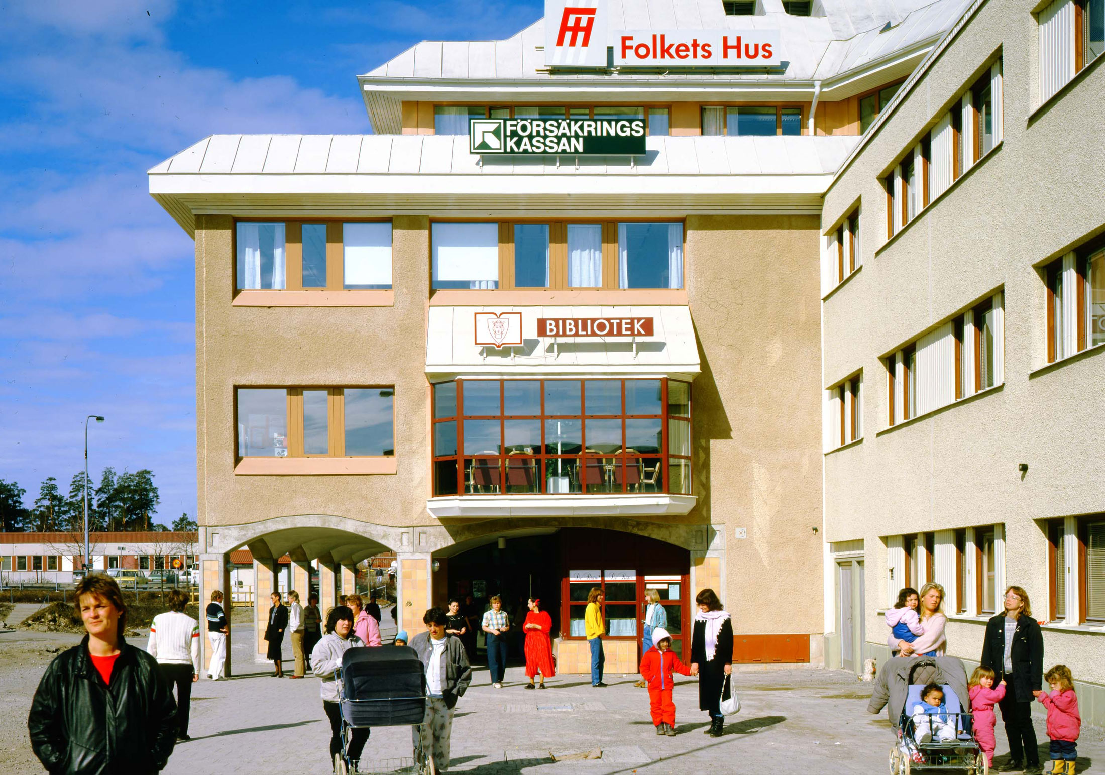Folkets hus i Rinkeby med sitt bibliotek, så som det såg ut när det öppnade. // Foto: Stockholm stad