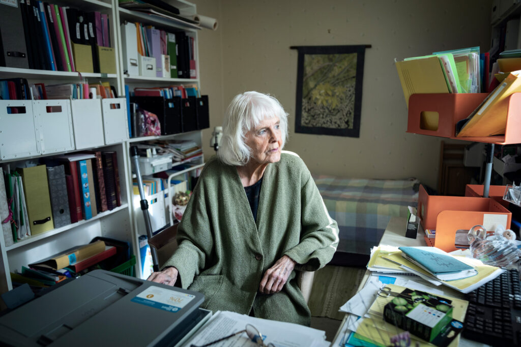 Anita D’Orazios hyreslägenhet ligger på Lidingö, nära bron över Lilla Värtan till Stockholm. Varje yta bär spår av hennes arbete för flyktingar: pärmar, mappar, böcker. Då har hon ändå donerat det mesta hon samlat på sig till Arbetarrörelsens arkiv och bibliotek.