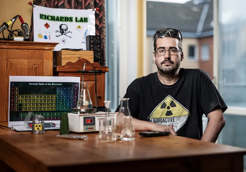 ”Jag har alltid varit intresserad av kemi och kärnfysik, och radioaktivitet kändes extra spännande eftersom det kunde vara farligt. Jag var 13-14 år när jag började jag skruva isär brandvarnare. Jag hade lärt mig till att det fanns en liten bit av det radioaktiva ämnet americium inuti och det var den jag ville komma åt.