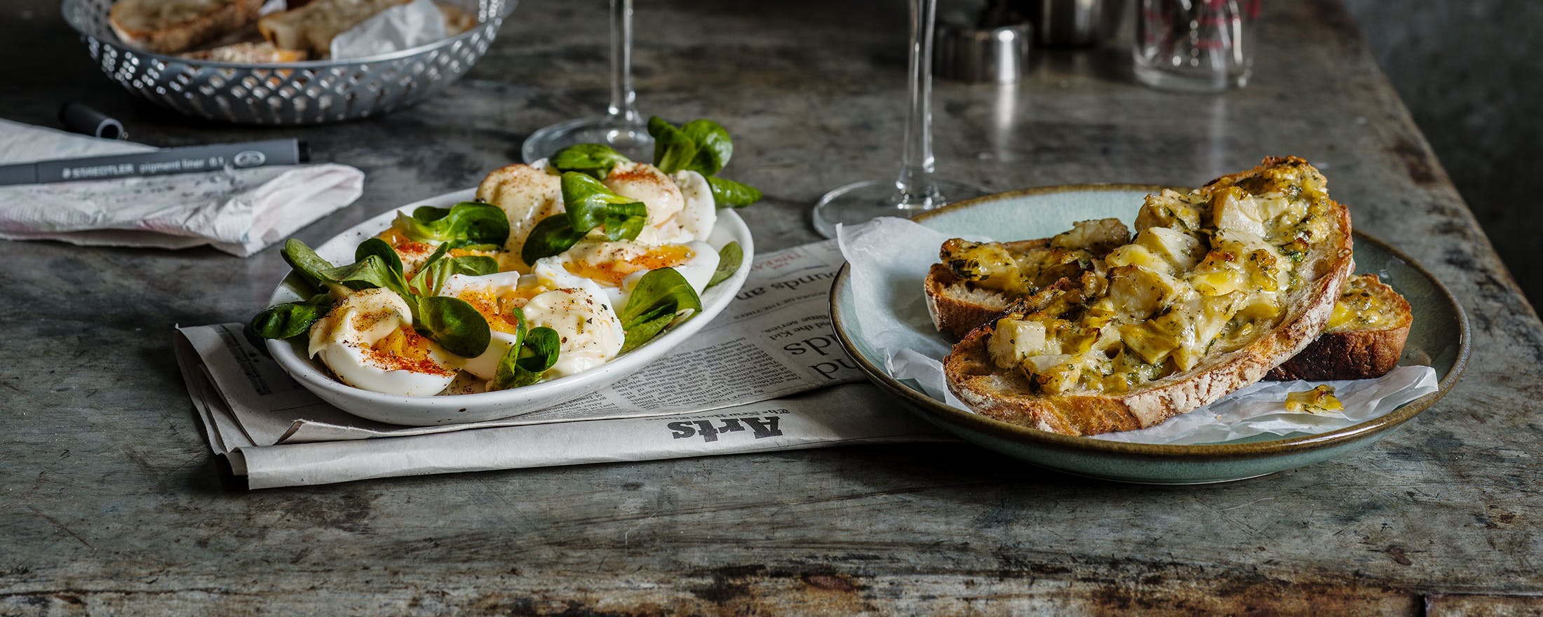 Min fru Maria och jag var i New York för några år sedan. Vi gick på en mysig restaurang i West Village och drack skummiga drinkar med citron och åt sedan en middag som bestod av oeufs mayonnaise och kronärtskockstoast. Enkla och oansenliga rätter, men supergoda!