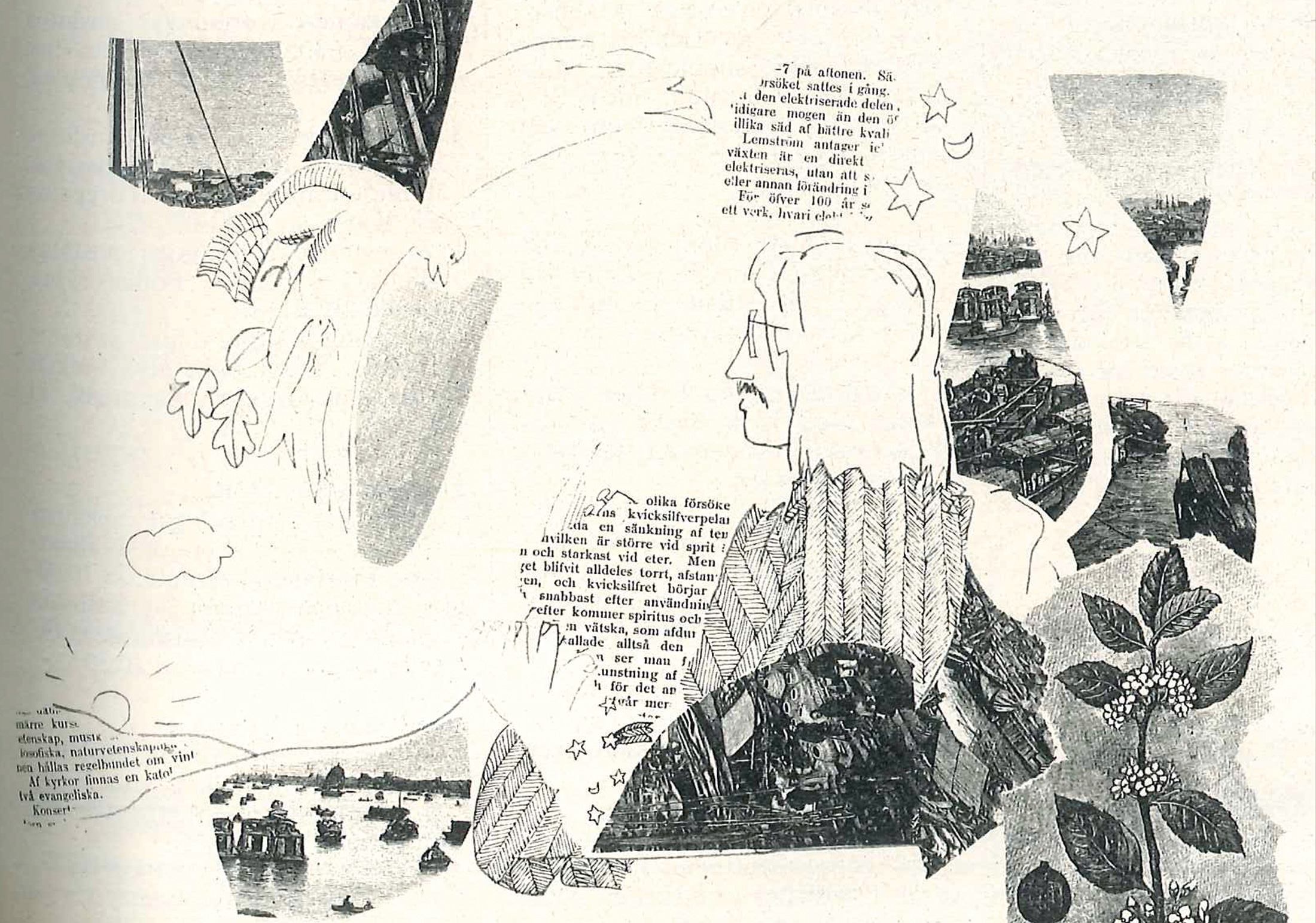 Var gång jag slöt ögonen såg jag bilder oavbrutet förvandlande sig in i nya bilder. De tycktes vara tecknade och figurerna rörde sig just som vore det fråga om en animerad film. En väg, ett träd, ett i vinden vajade fält solrosor förvandlas till flygplan över startplattan, trafikledarens signaler är fiskar på botten av en damm, flygplansmotorernas vrål det tysta ögonblicket mellan åskans blixt och muller, slutligen blir allt en kvinna, en kropp som hos John-e Franzén: behå, ett litet veck över magen i hennes sittande ställning, det lilla mellanrummet mellan låren och skötet öppnat i blå färger mot duken. Är benen pelare i den grekiska mytens tempel eller de aztekiska prästernas slutgiltiga uppehåll: det flämtande hjärtat i handen; skriken och munnarna vid trappans fot, solstrålarna som smälter i pannbanden och får flintkniven att skaka i det öppna såret? Allt blev för mina slutna ögon bilder, tecknade och in i varandra i nya enheter sammanfogade med en teknik som i mycket liknade den animerade filmens. Bilder i varandra.