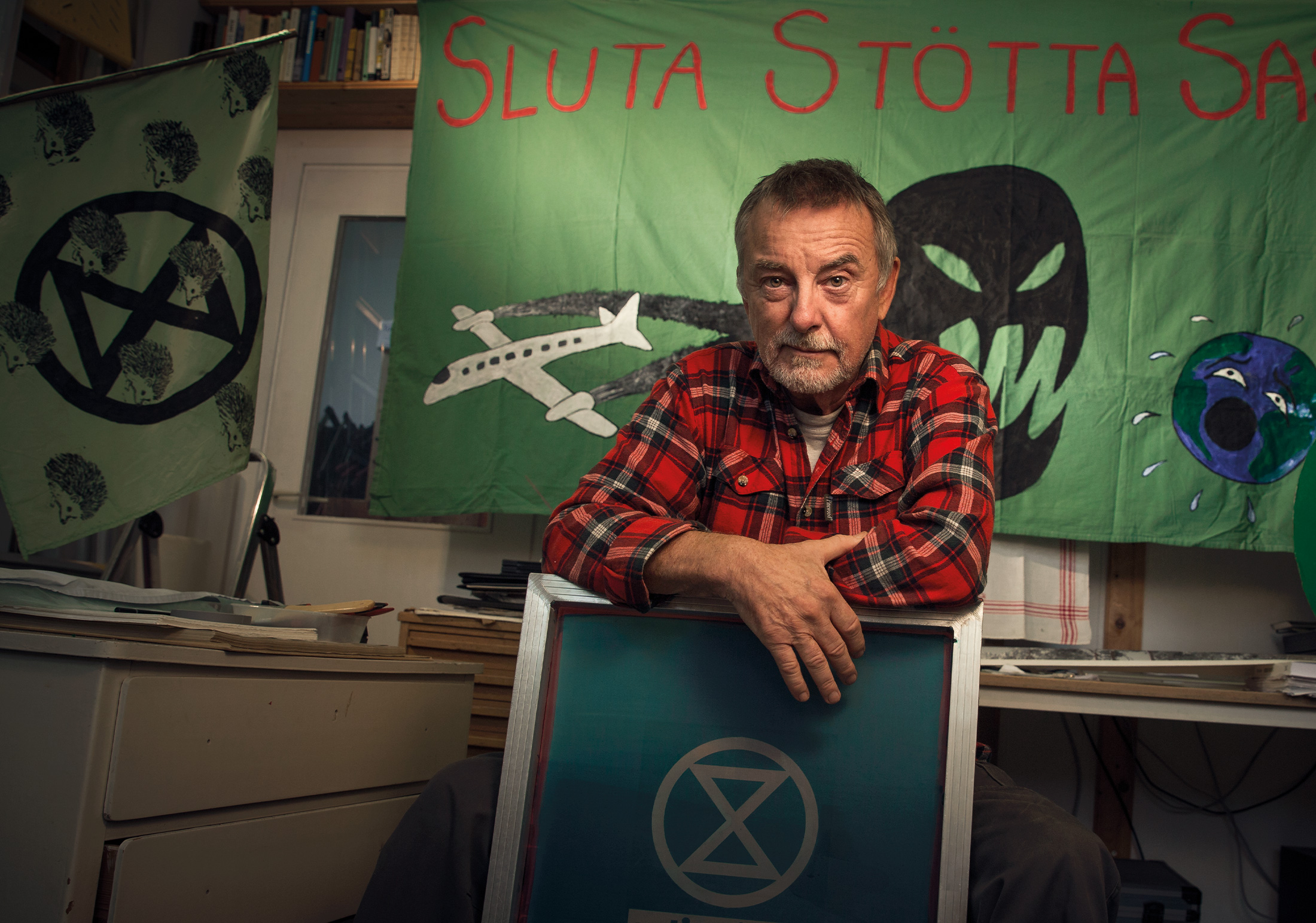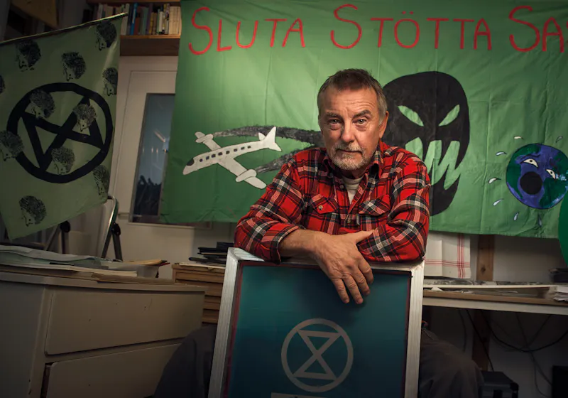 FOTNOT: Göran Boardy deltog även i den aktion som Extinction Rebellion genomförde den 31 oktober på flera platser i Sverige. Han var med och försenade ett plan som skulle lyfta från Halmstad. Planerna var hemliga och genomfördes strax efter Axel Kronholm intervjuade Göran Boardy.