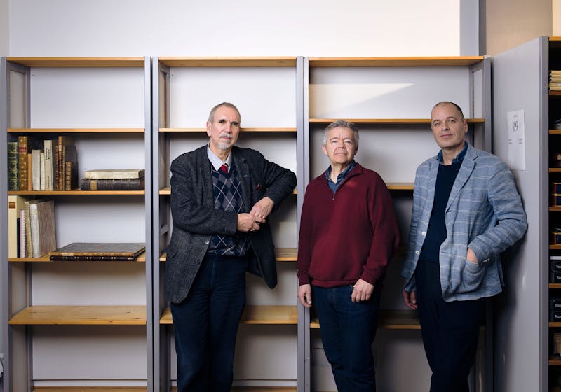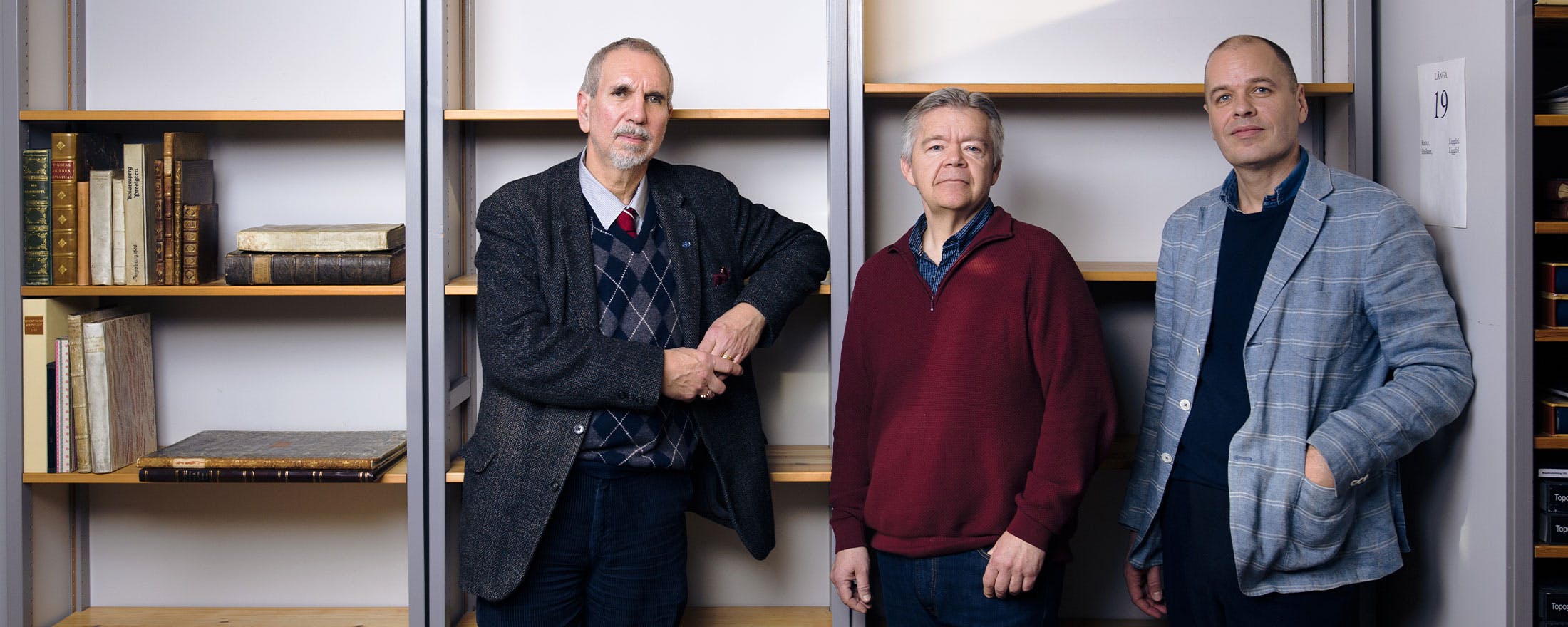 Lars Korsell, Jan Ottosson och Greger Bergvall, författare till boken ”Brottsplats KB: Jakten på de stulna böckerna”. // Foto: Stefan Tell
