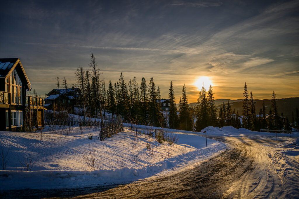 Vi tar en paus i Mörsil, köper kaffe på en mack och svänger ner till sjön vid Tossön. Det ryker ur pappkopparna och biter i kinderna. Snart sitter vi i bilen igen och när vi slutligen kört de cirka nittio minuterna från Östersund ser vi Åreskutan mitt framför oss, väldig och snöklädd med sin krokiga topp. Röda hus med vita knutar ligger utspillda här och var. Nere i dalen dit solen inte når flyter den frusna Åresjön under ett tjockt lager dimma.