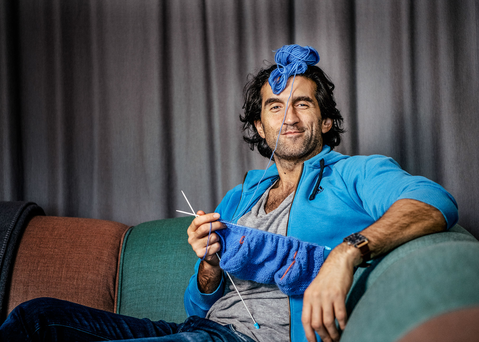 Regissören Josef Fares har stickat sedan han var liten, det ger vila och löser problem.