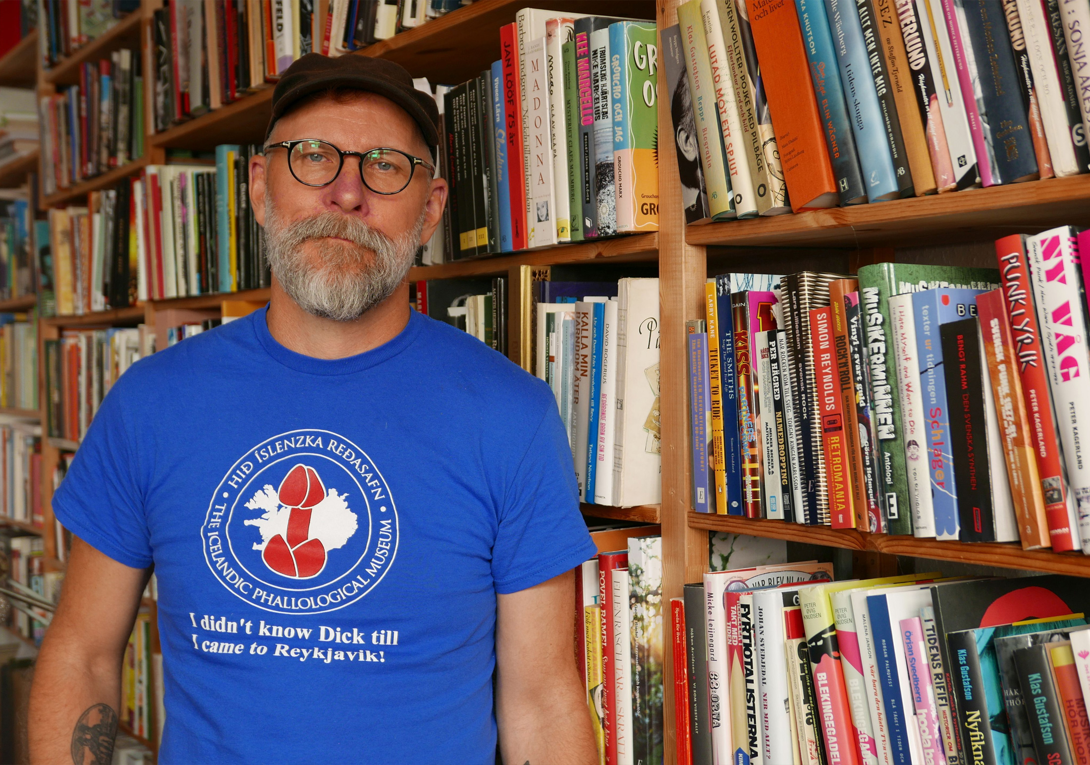 Det är dock inte bara underhållningshistoria i hyllorna, utan även skönlitteratur. Astrid och Barbro Lindgren är grundvalarna. Därefter: Hasse och Tage, Tove Jansson, Kristina Lugn, Bodil Malmsten, Sjöwall Wahlöö. Och Klas Östergrens Gentlemen, som han ibland plockar upp bara för att läsa ett stycke.