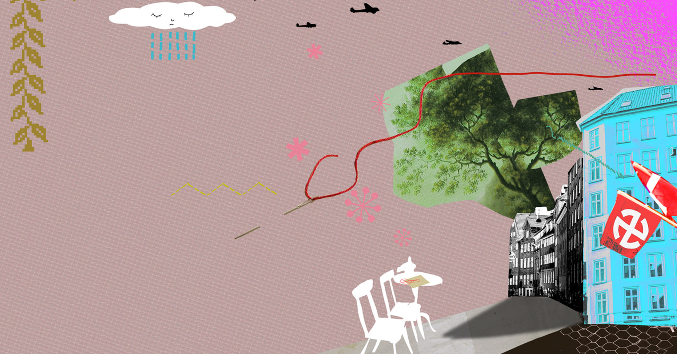 Broderi är generellt förknippat med hemmet, det utförs ofta på en ledig stund och för det mesta av kvinnor. Enligt samma logik betraktas handarbete som något privat och tidlöst snarare än som ett forum för dagsaktuella inlägg i samhällsdebatten eller nyhetsflödet. Det pågår i långsamhet och i den tystnad som uppstår av koncentration och mönsterläsning. Men just detta loppisfynd slet itu korsstygnens fridsamma associationer. Bombplan och flyktbåtar trängdes med ord som ”tyska koncentrationsläger” och ”Danmarks judar”. Jag förstod att broderiet var en historieskrivning. Men det var också mer än så. Det var en bearbetning av en kollektiv smärta och det var ett minne.