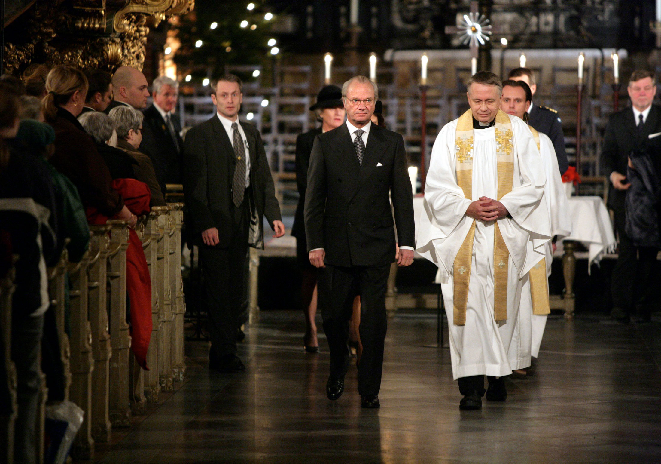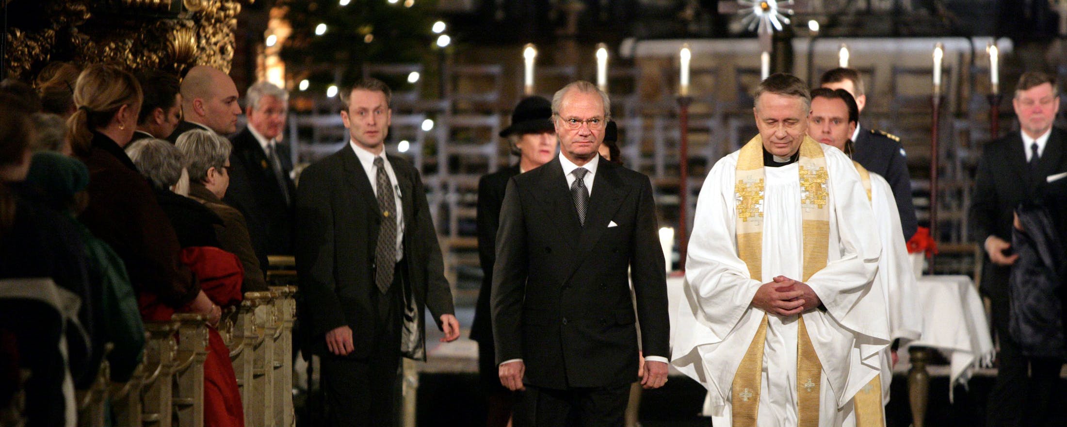 Kung Carl Gustaf XVI tillsammans med domprost Hakon Långström i Storkyrkan. Förbönsandakt efter Tsunamikatastrofen. // Foto: TT
