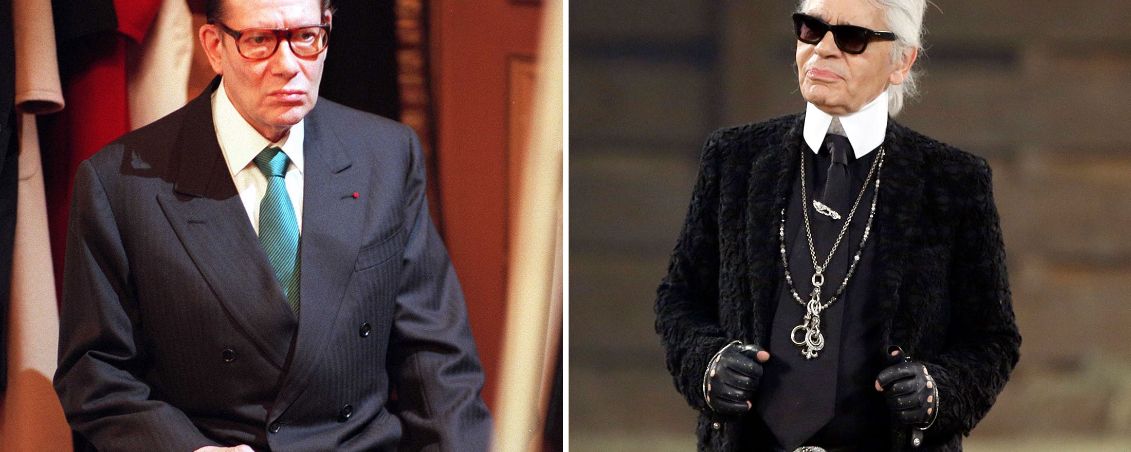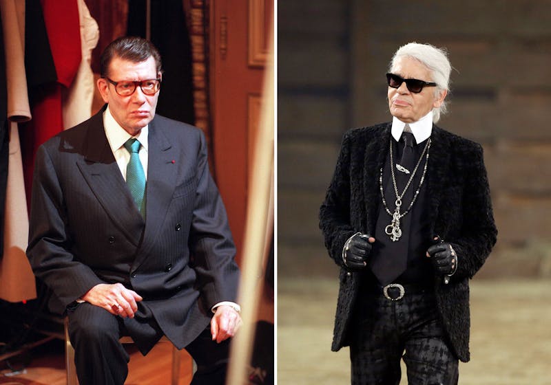 Yves Saint Laurent och Karl Lagerfeld. // Foto: Tony Gutierrez/Ben Coster/TT