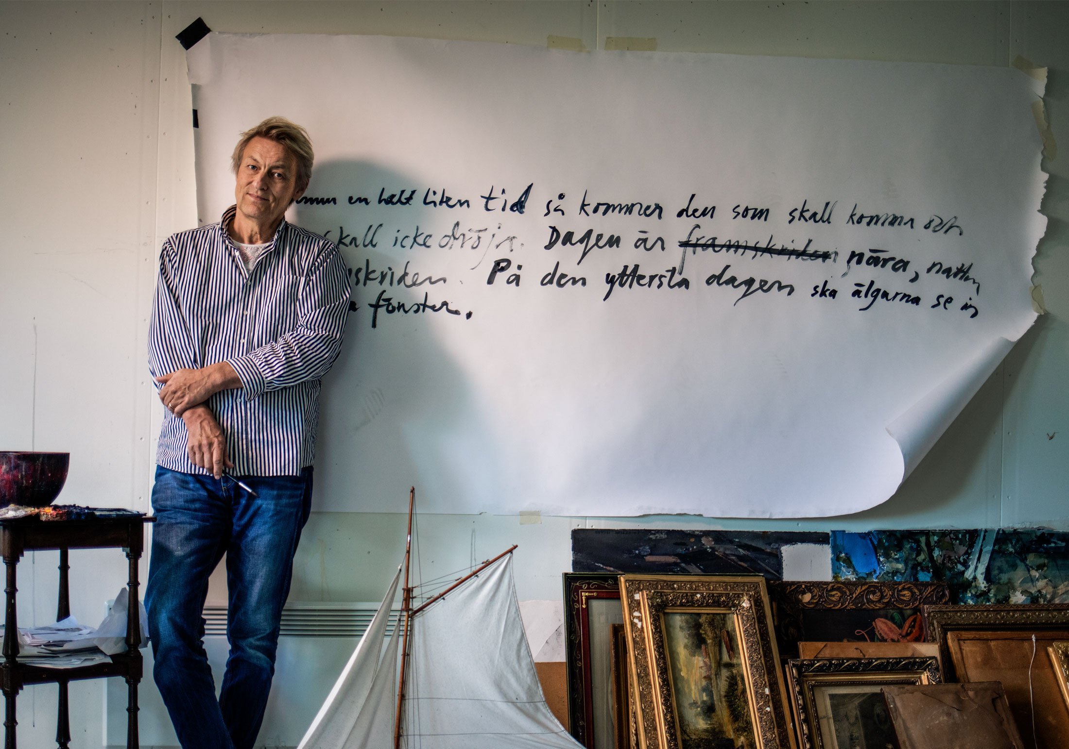 Jag har stämt träff med den folkkäre konstnären för att tala om den uppbragta textFotnot: Lars Lerins [text](https://vi.se/artikel/srz9nj6e-m0jnkY6y-bb1d7) och undersökning av [biblioteksdöden](http://vi.se/artikel/sN1dDomY-m0jnkY6y-23925). han skrev på vi.se, som en reaktion på tidningens undersökning av biblioteksdöden. Granskningen visade att hela 435 bibliotek har lagts ned sedan 1998 – och att biblioteken under samma period tvingats göra sig av med över 30 procent av sitt bokbestånd. Utgallringen av böcker fortsätter i det tysta, 1 800 böcker försvinner från biblioteken. Per dag.
