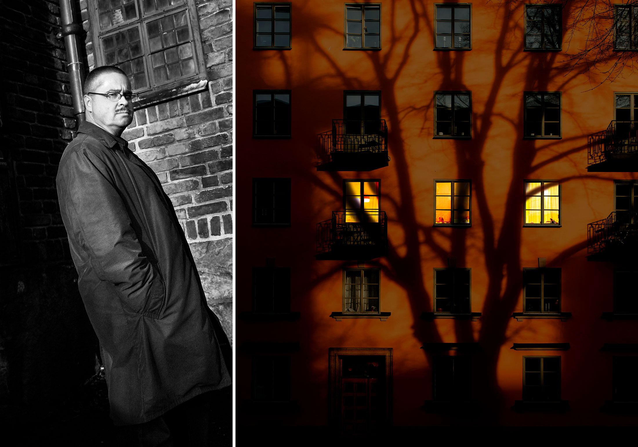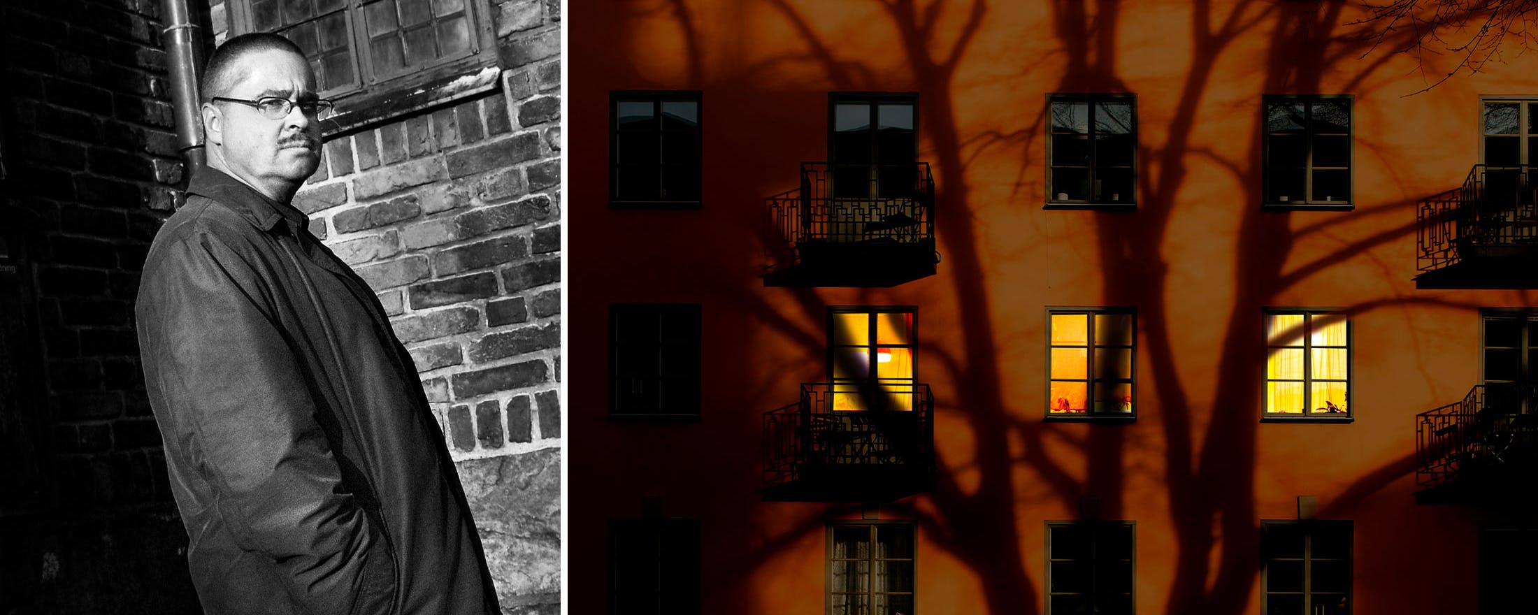 Det lyser i den döde författarens fönster. Innerstadsgatan ligger som ett svart schakt i midnattstimmen. Våning på våning på våning av släckta lägenheter. Men strax under stjärnhimlens väldiga kupa bryts det mörka mönstret: tre varmt gula rutor.