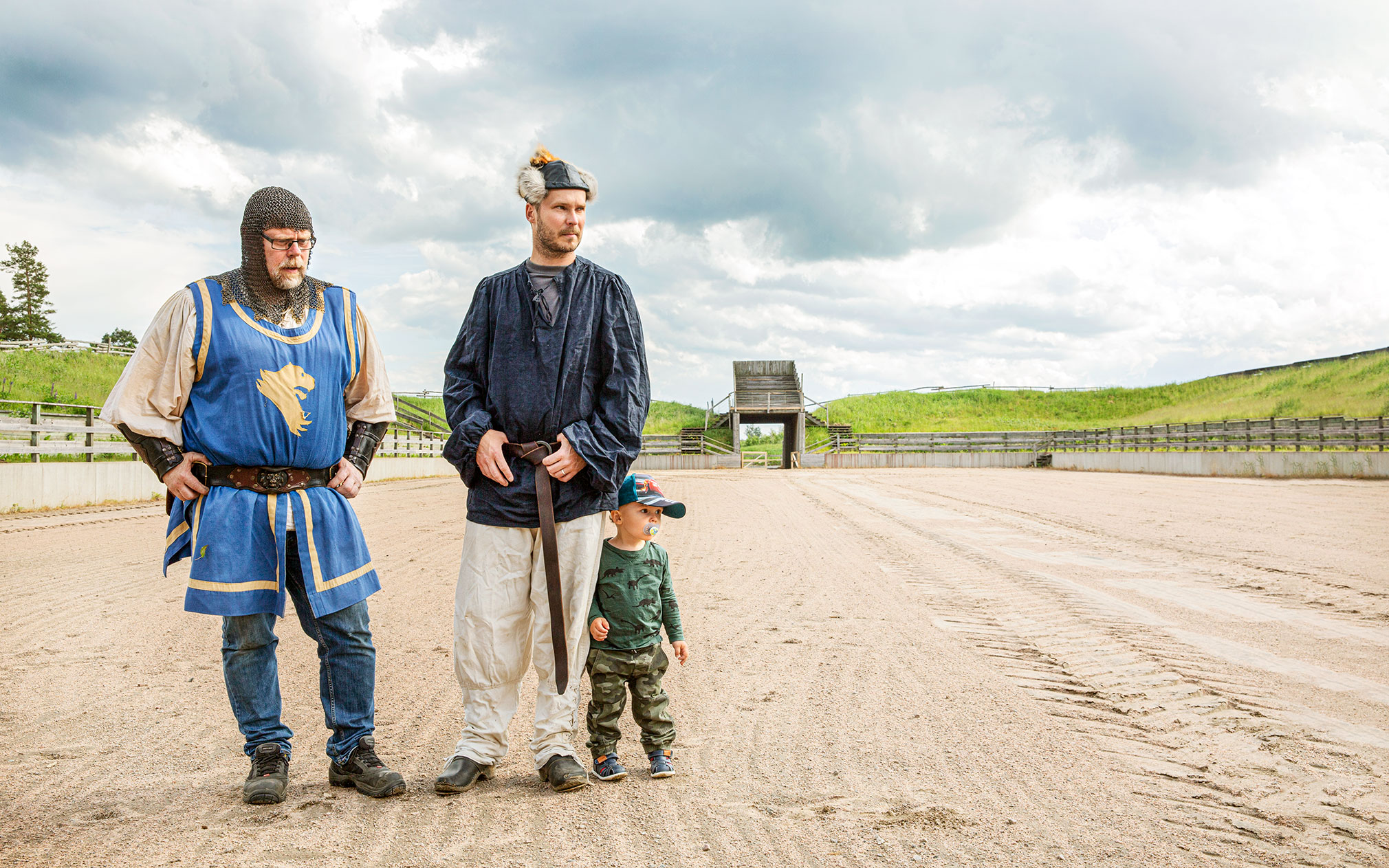 Den lokala medeltidsföreningen Infensus nyttjar fortfarande Medeltidens världs tornerspelsarena. Att resten av upplevelse-parken jämnades med marken förvånar inte Pontus Persson (t.v.), alias Riddare Lejongap: ”De ville väl sopa bort spåren av ett misslyckande.” // Foto: Sara Mac Key
