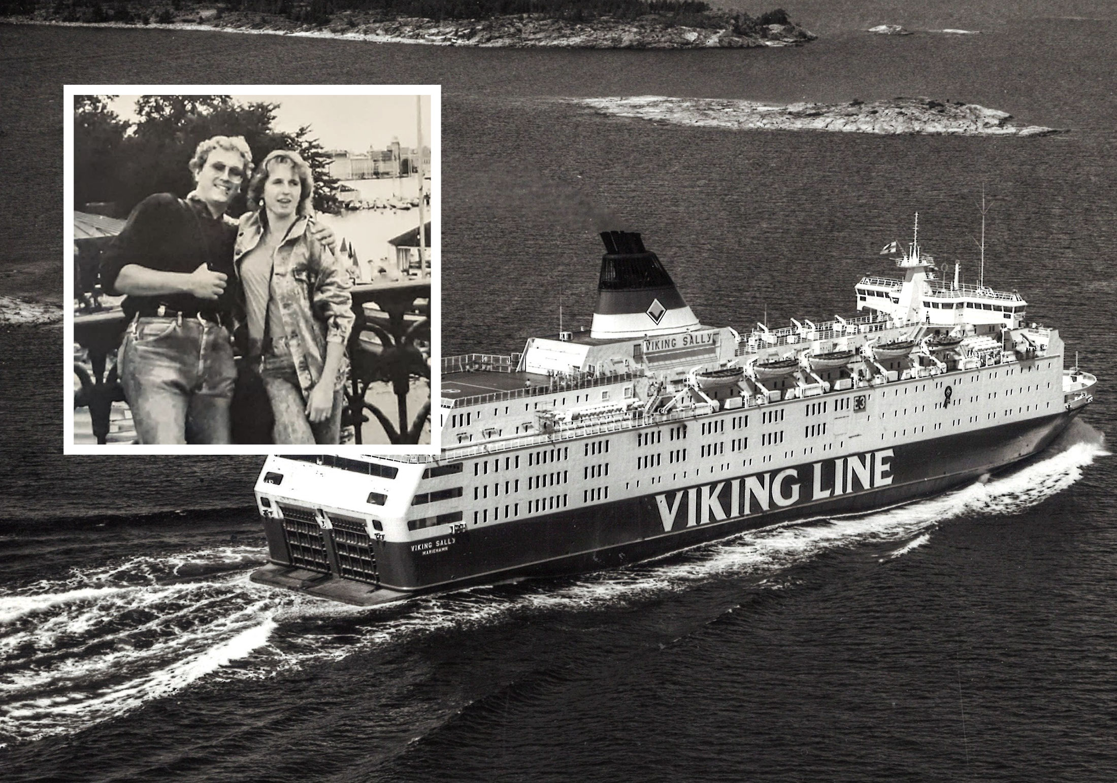 Lilla bilden: Juli 1987. Paret Klaus Schelkle och Bettina Taxis passerar Stockholm på sin Interrailresa. Senare samma dag kliver de på Viking Sally. // Foto från finska polisens arkiv/TT