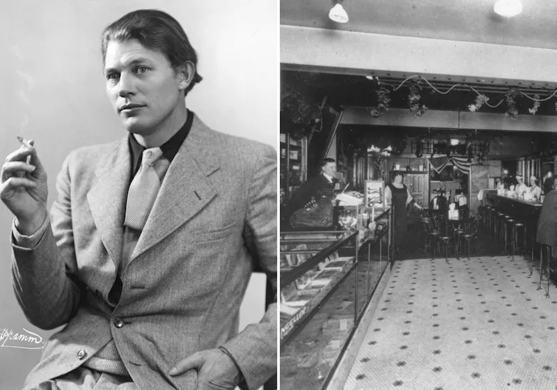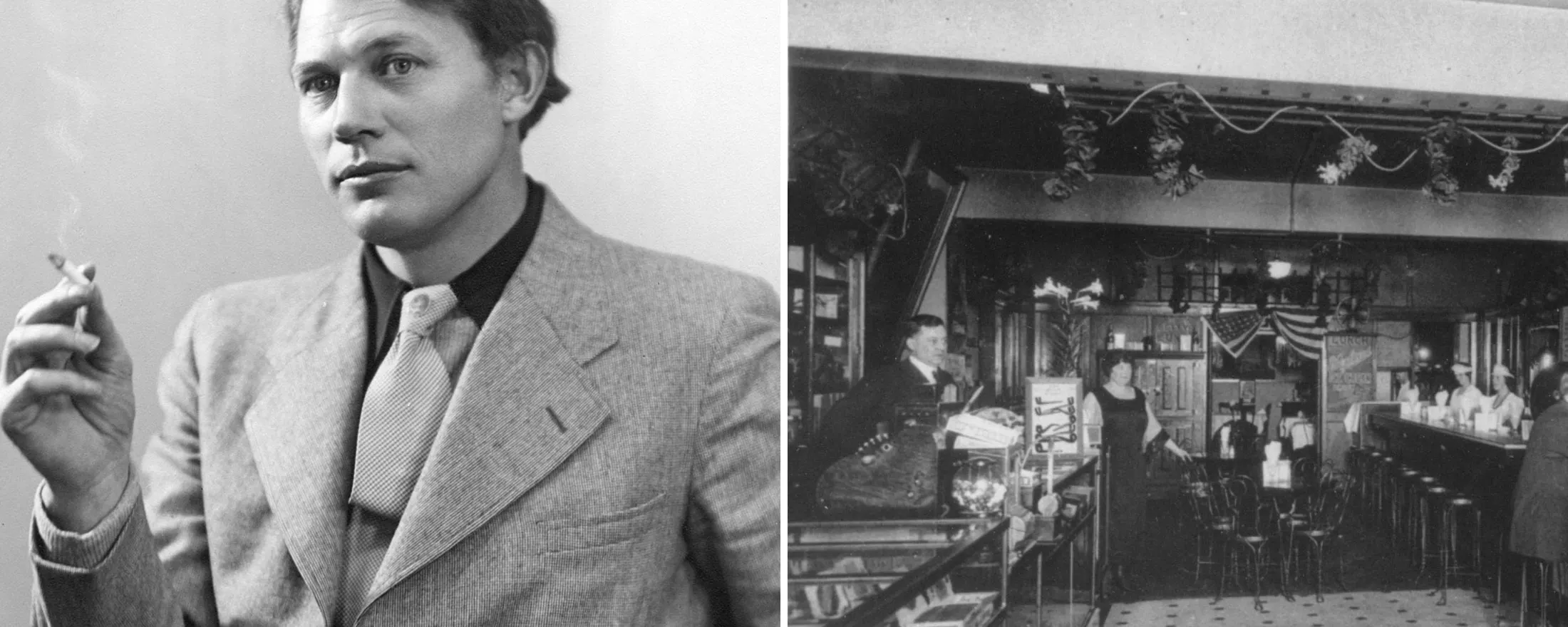 Harry Martinson, samt Bettys kafé i lyxiga Multnornah Hotel i Portland. Betty själv skymtar bortom den vänstra disken. // Foto: Petrus Pramm