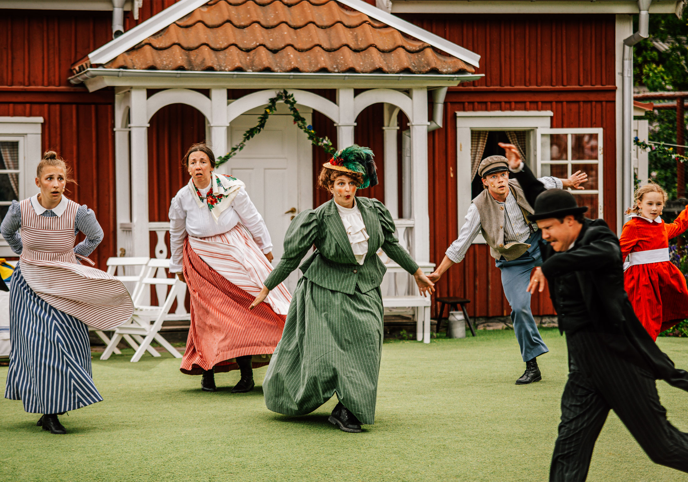 ”Redan i mars börjar repetitionerna inför sommarens föreställningar på Astrid Lindgrens värld, då är vi ungefär 150 skådespelare, musiker och scentekniker som flyttar till Vimmerby. De som är kvar längst är här september ut – och vissa kommer dessutom tillbaka till höstlovet då parken har öppet igen. Det gör att vi blir ett tajt gäng som både bor och arbetar tillsammans. Vi bor i olika personalbostäder som parken ordnar, jag delar villa med tre kollegor. Hemma i Göteborg bor jag i en liten etta, så kontrasten är stor – här har vi balkong, trädgård och uteplats. Och folk i alla rum!