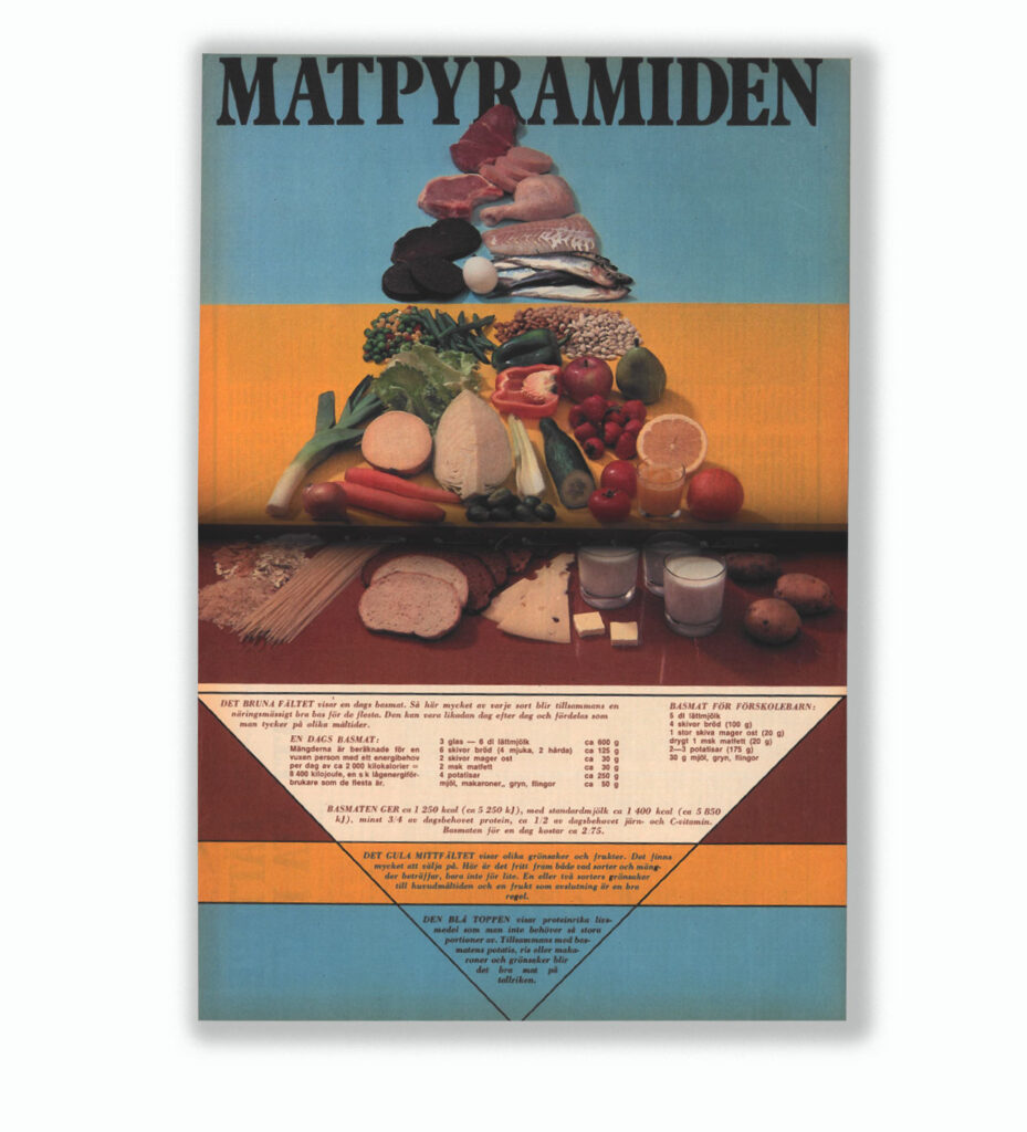 Vad många inte känner till är att den är ett svenskt påfund, som togs fram av Kooperativa Förbundet tillsammans med Socialstyrelsen och lanserades 1974 i, just det, tidningen Vi. Matpyramiden var tänkt som en pedagogisk utveckling av kostcirkeln, men till skillnad från hur den senare blev tolkad var det egentligen ingen hälsorekommendation utan ett svar på stigande matpriser. Bröd, spannmål och potatis ansågs vara basvaror på grund av att de var billiga och närande medan kött, fisk och ägg placerades högre upp i pyramiden. Inte för att de var hälsofarliga, utan för att de var dyra.