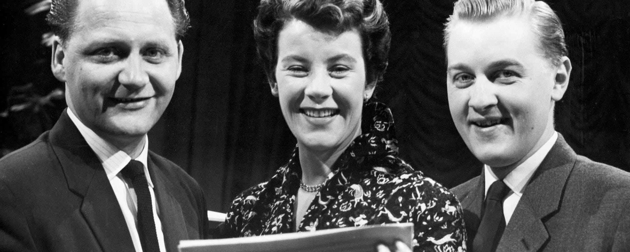 Melodifestivals-vinnare 1959: Åke Gerhard, Brita Borg och Bo Sandin. // Foto: TT