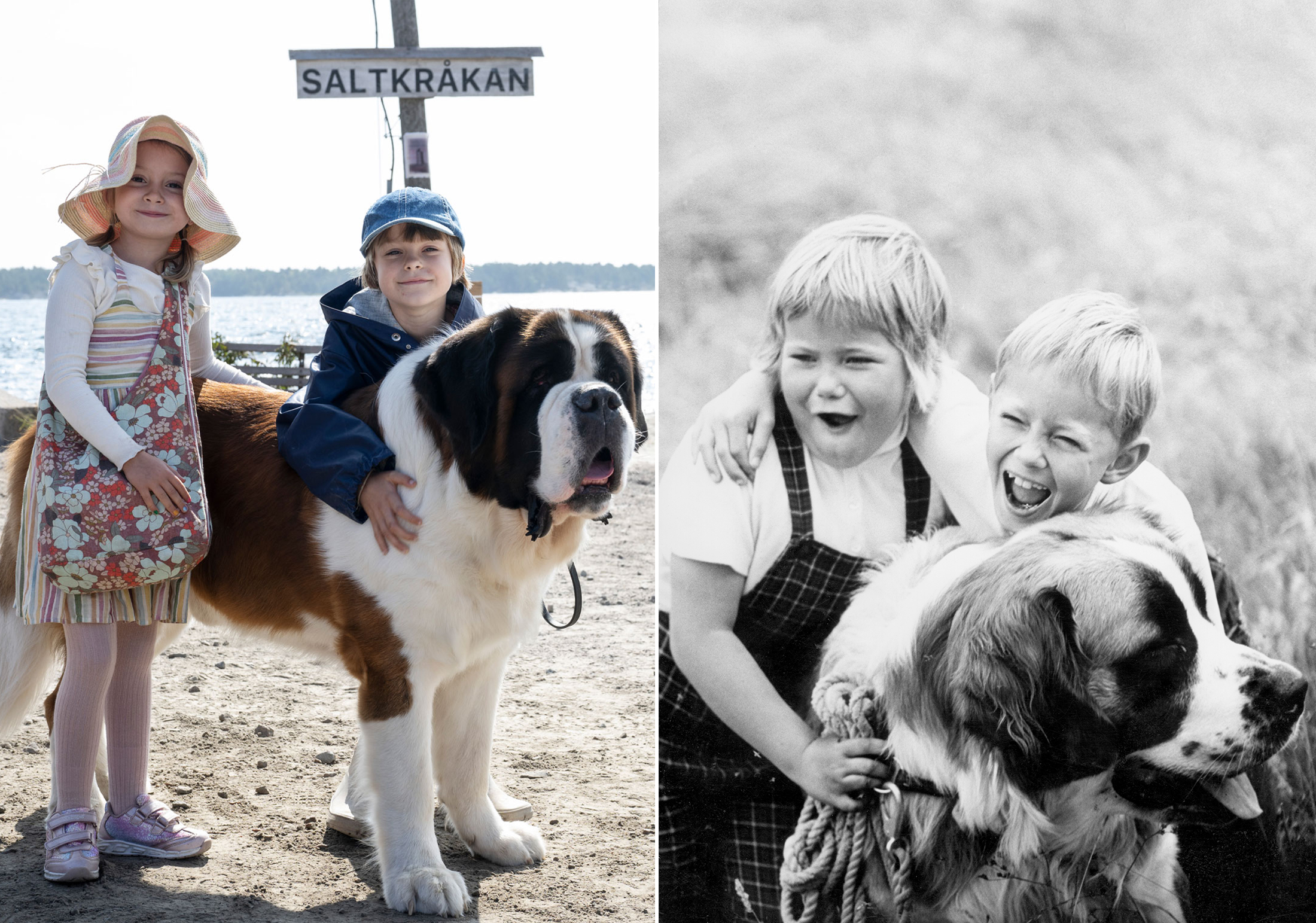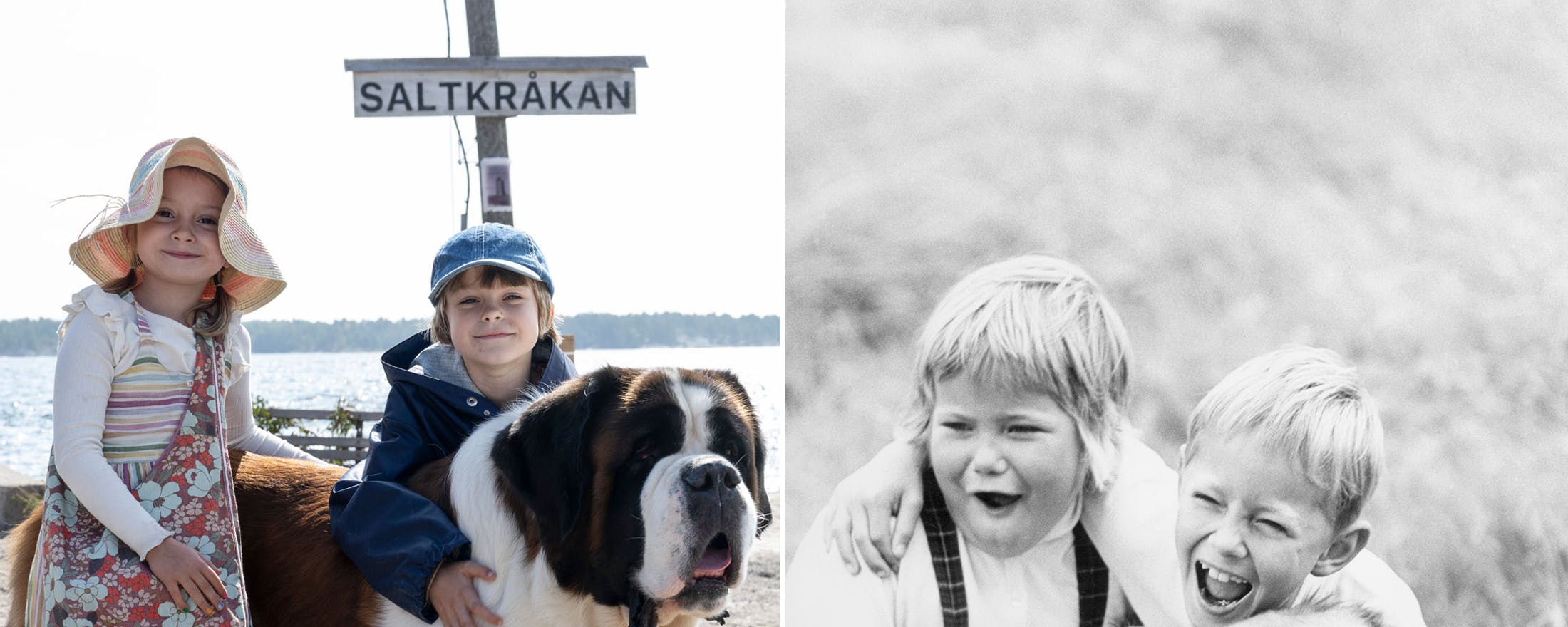 Tjorven, Båtsman och Stina 2024 till vänster, Tjorven, Båtsman och Pelle 1964 till höger. // Foto: Fredrik Sandberg/Ulf Stråhle