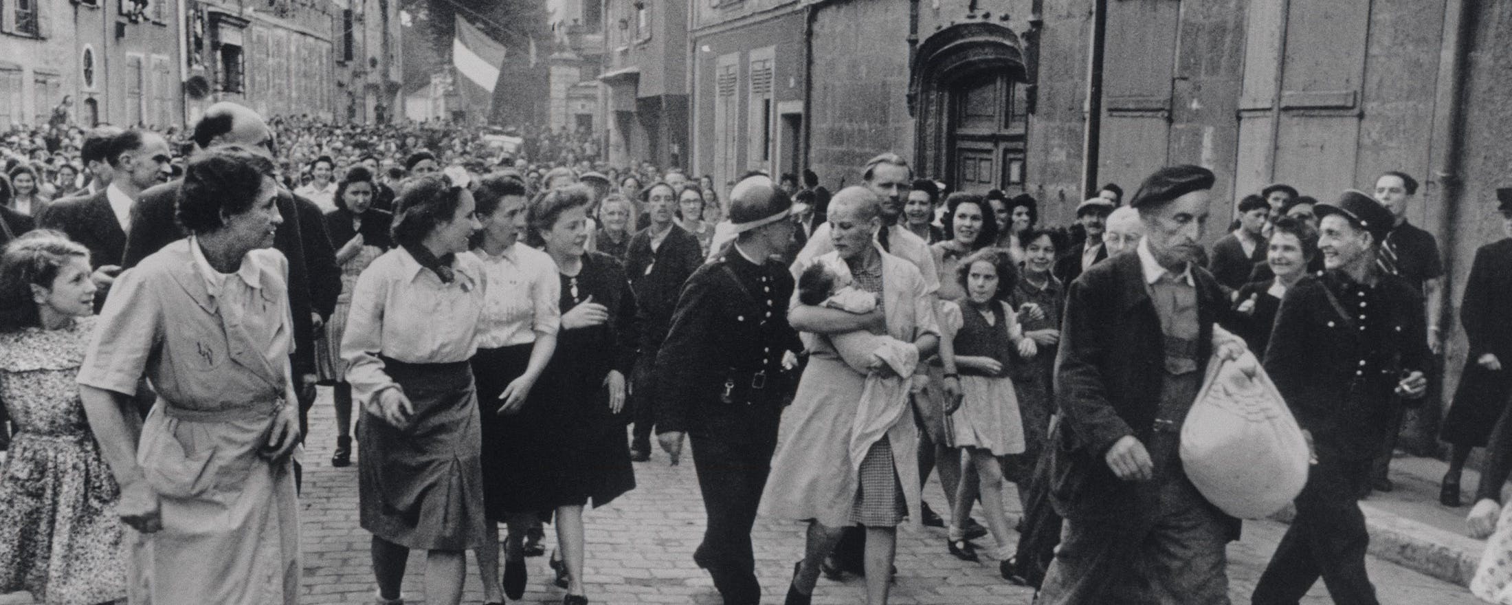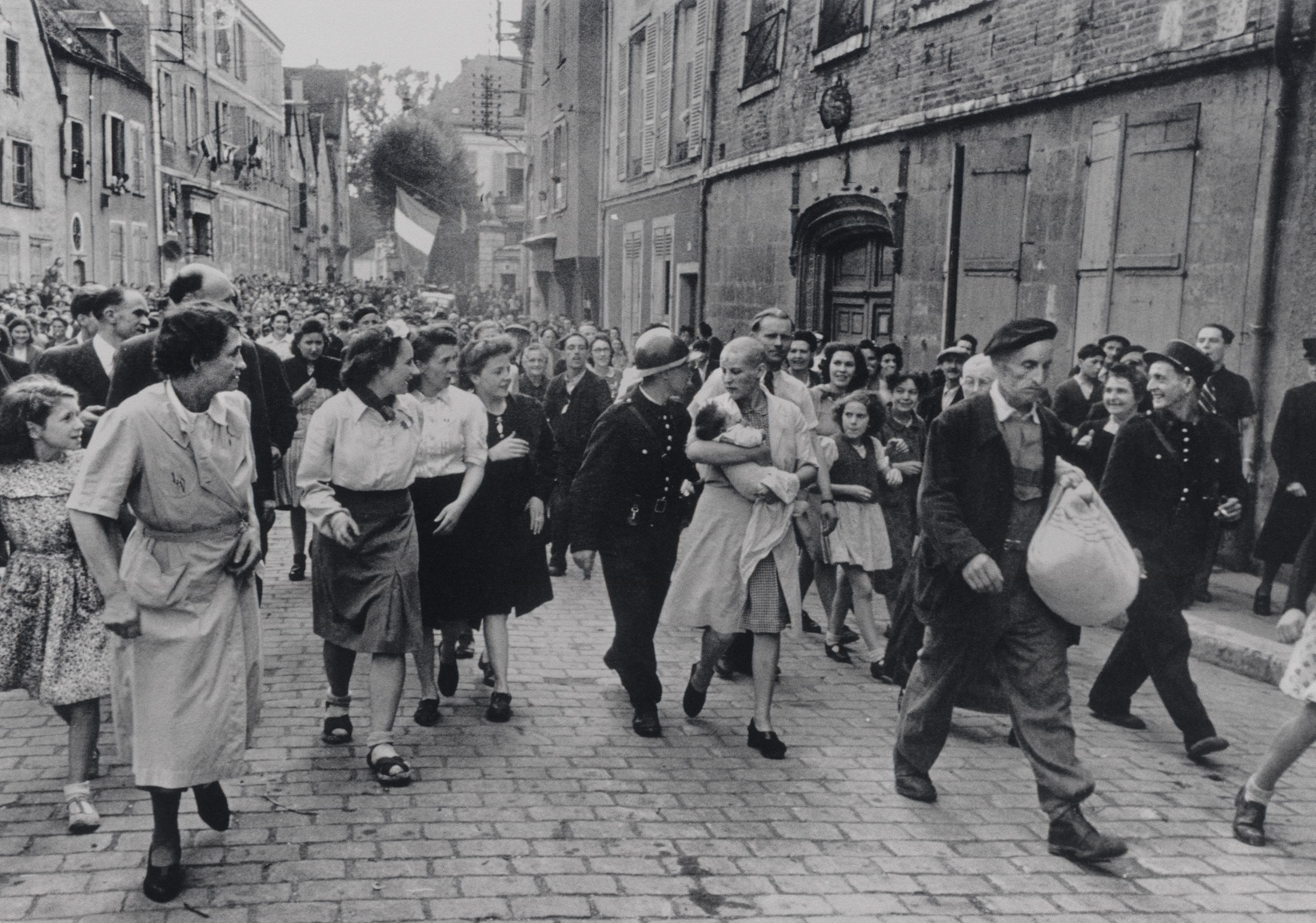 Hundratals Chartresbor följde medlöparen Simone Touseau på väg till fängelset den 16 augusti 1944. Hot och hån haglade över henne. // Foto: Robert Capa/Magnum/TT