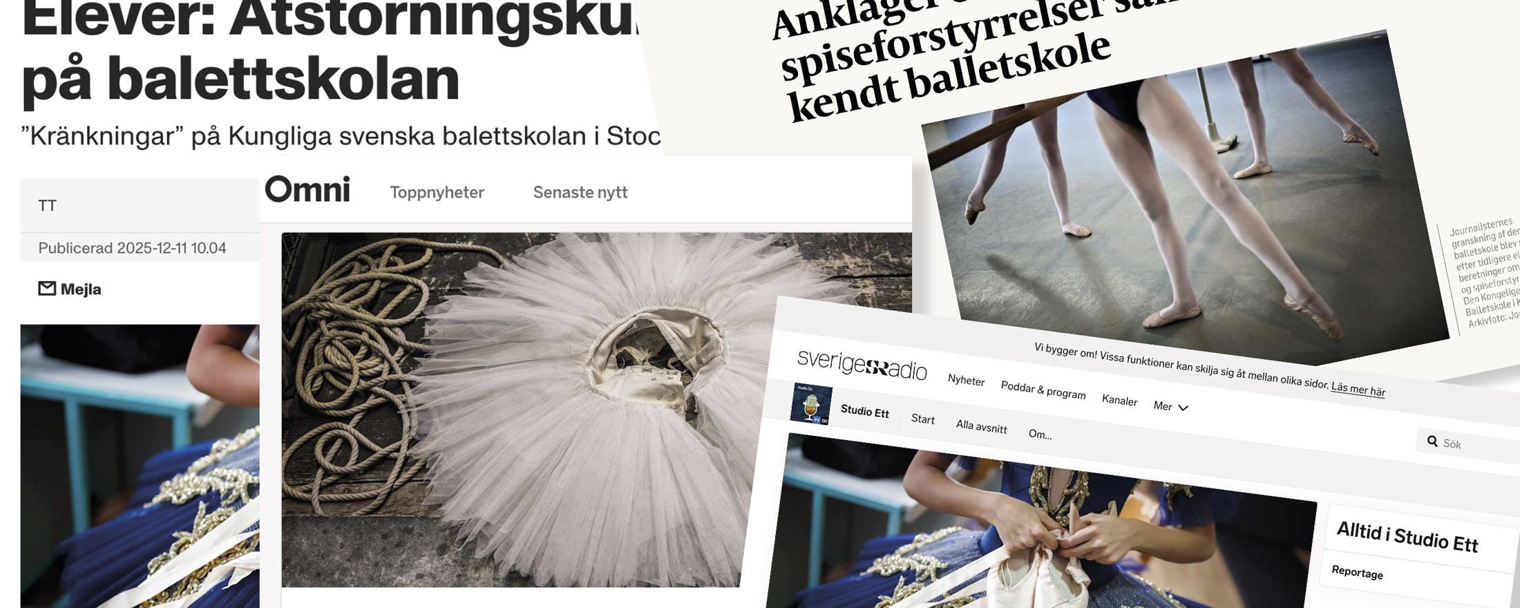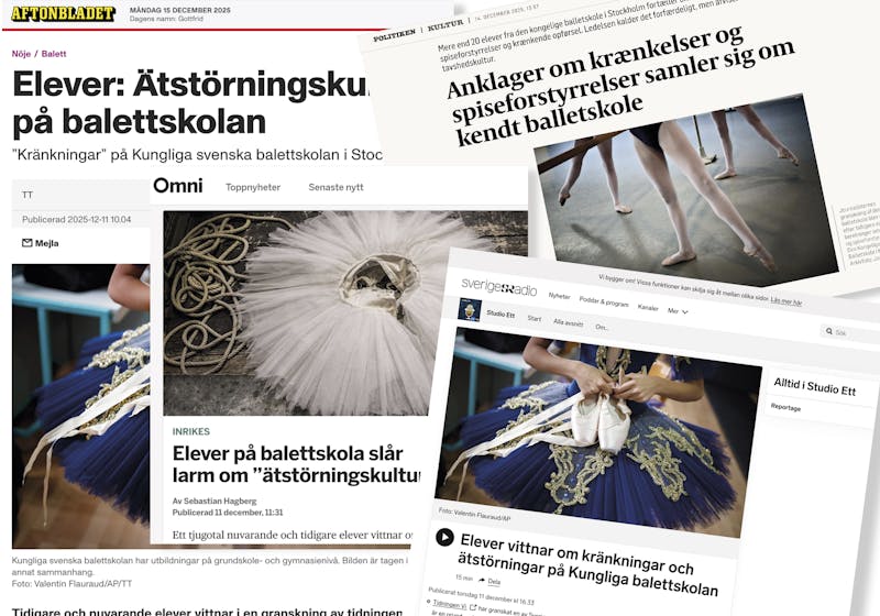I söndags publicerade också den danska dagstidningen Politiken en artikel om Vi:s granskning och drar paralleller till tidningens egen nyhet från 2023. Då vittnade 17 elever från Den kungliga teaterns balettskola i Köpenhamn om en skolmiljö präglad av hård press och mobbning från lärare som lett till att de utvecklat ätstörningar.