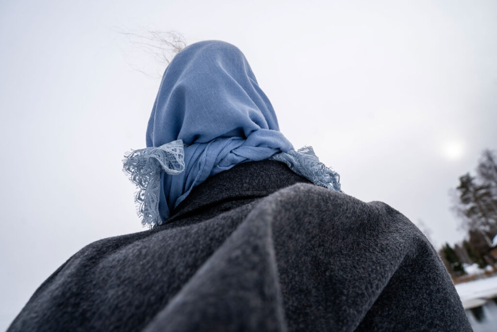 Men inne i det som en gång var ett klassrum för karelska skolbarn pågår just nu en kurs i gråtkväden. Något är på väg att ske. Ljudet från pennor mot papper, fingrar i kexpåsar, diskussioner kring vilken naturmetafor som bäst beskriver sorg, honungsskedar mot tekoppskanter – allt detta upphör när 32-åriga Claudia Laine höjer den beigea näsduken med röda broderier mot tinningen, och sluter ögonen.
