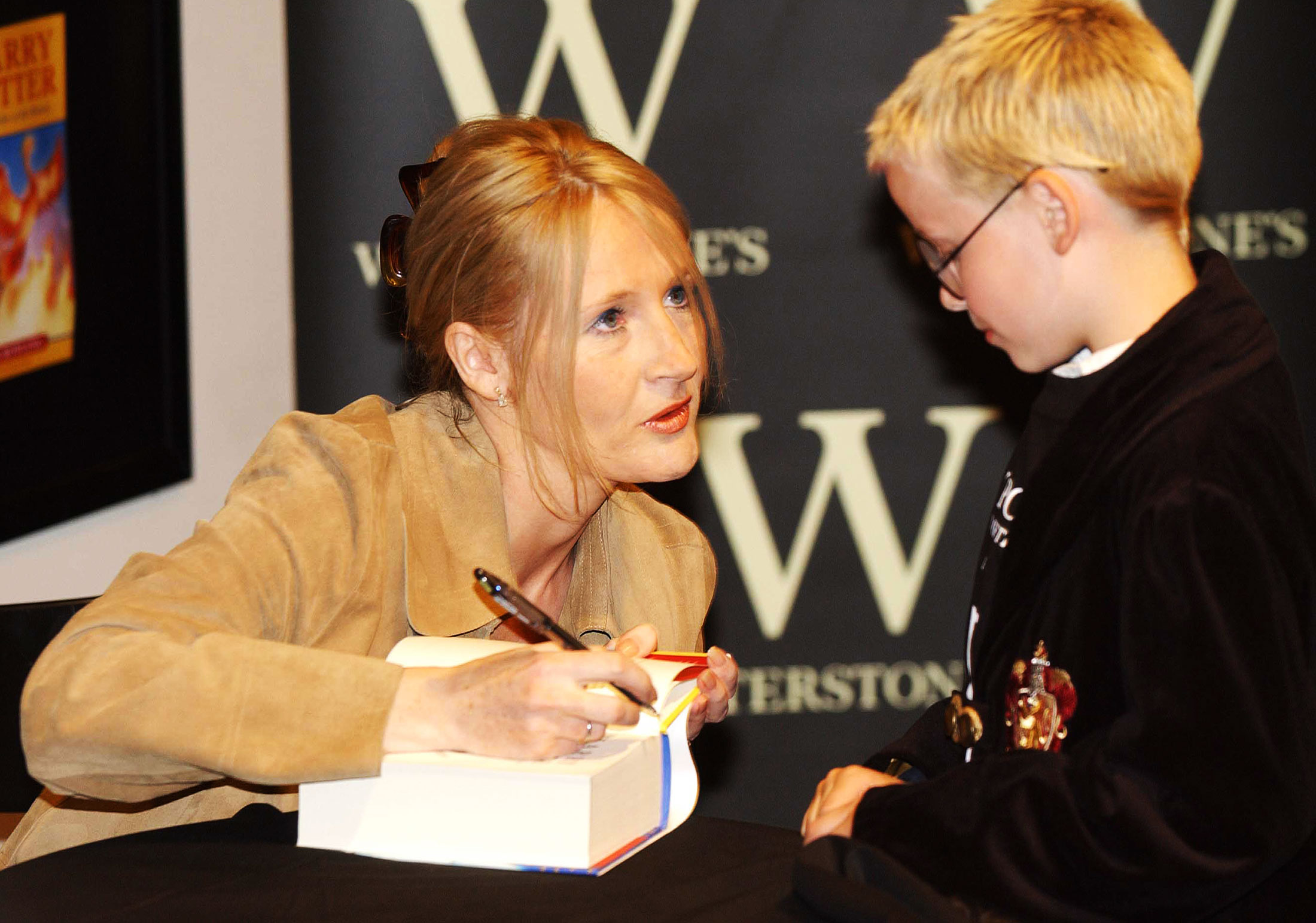 J K Rowling signerar ”Harry Potter och Fenixorden” 2003. En förstaupplaga som lär ha sålt i mer än 3 000 exemplar. // Foto: Phil Wilkinson / TSPL