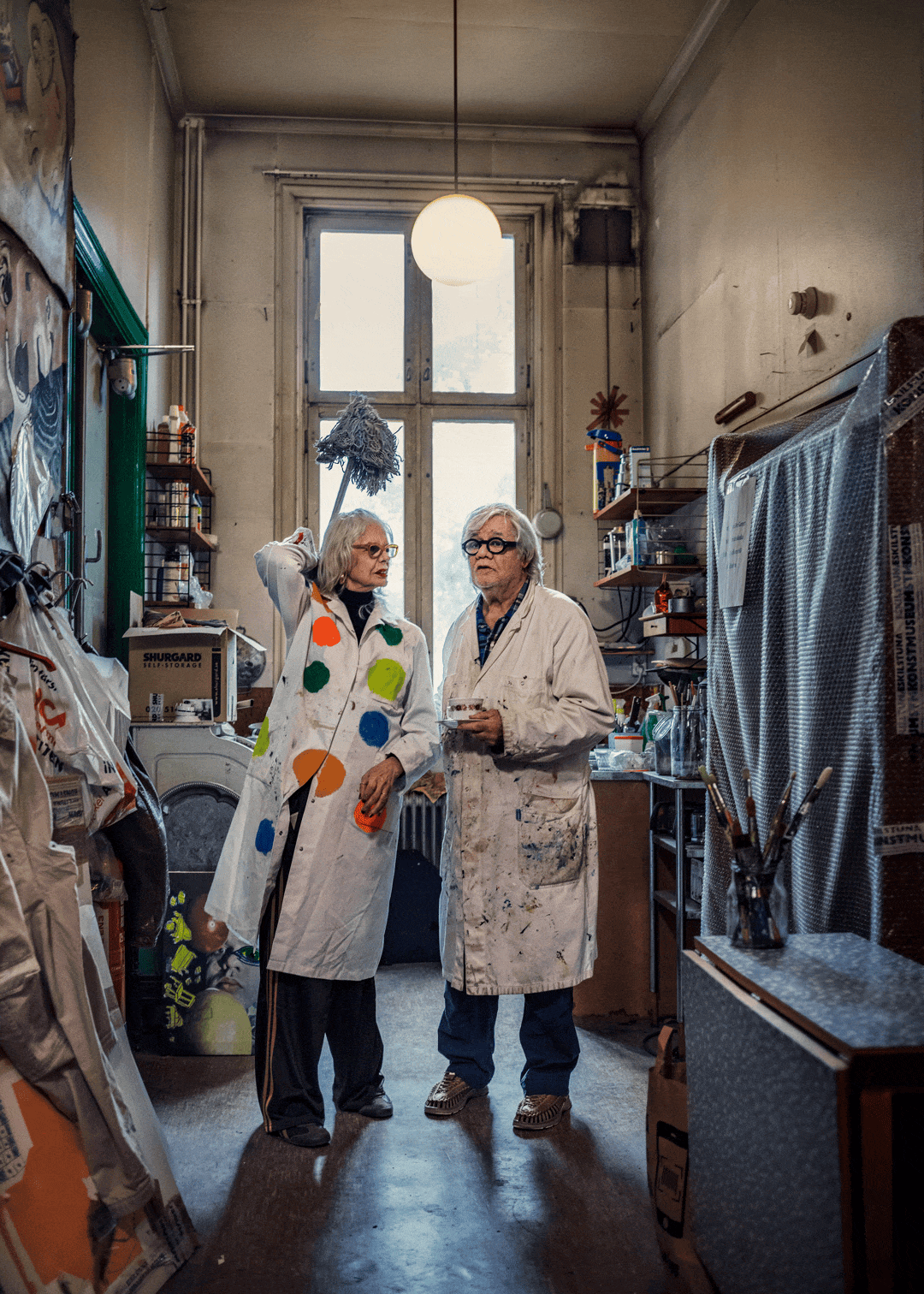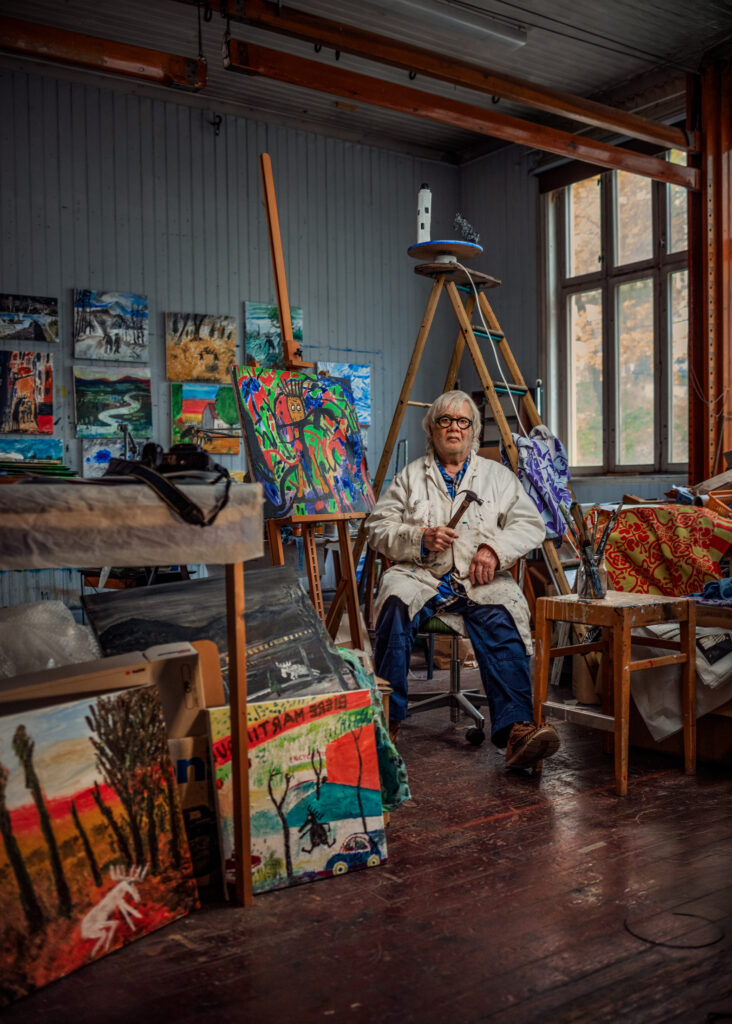 Om asfalten är snöfri cyklar han fortfarande en halvmil till sin ateljé: en omvandlad gymnastiksal i Årsta. Där städas aldrig. När ett nytt arbete påbörjas lägger han bara en plywoodskiva ovanpå sitt senaste projekt. De konstnärliga sedimentslagren gör arbetsbordet högre för varje år.