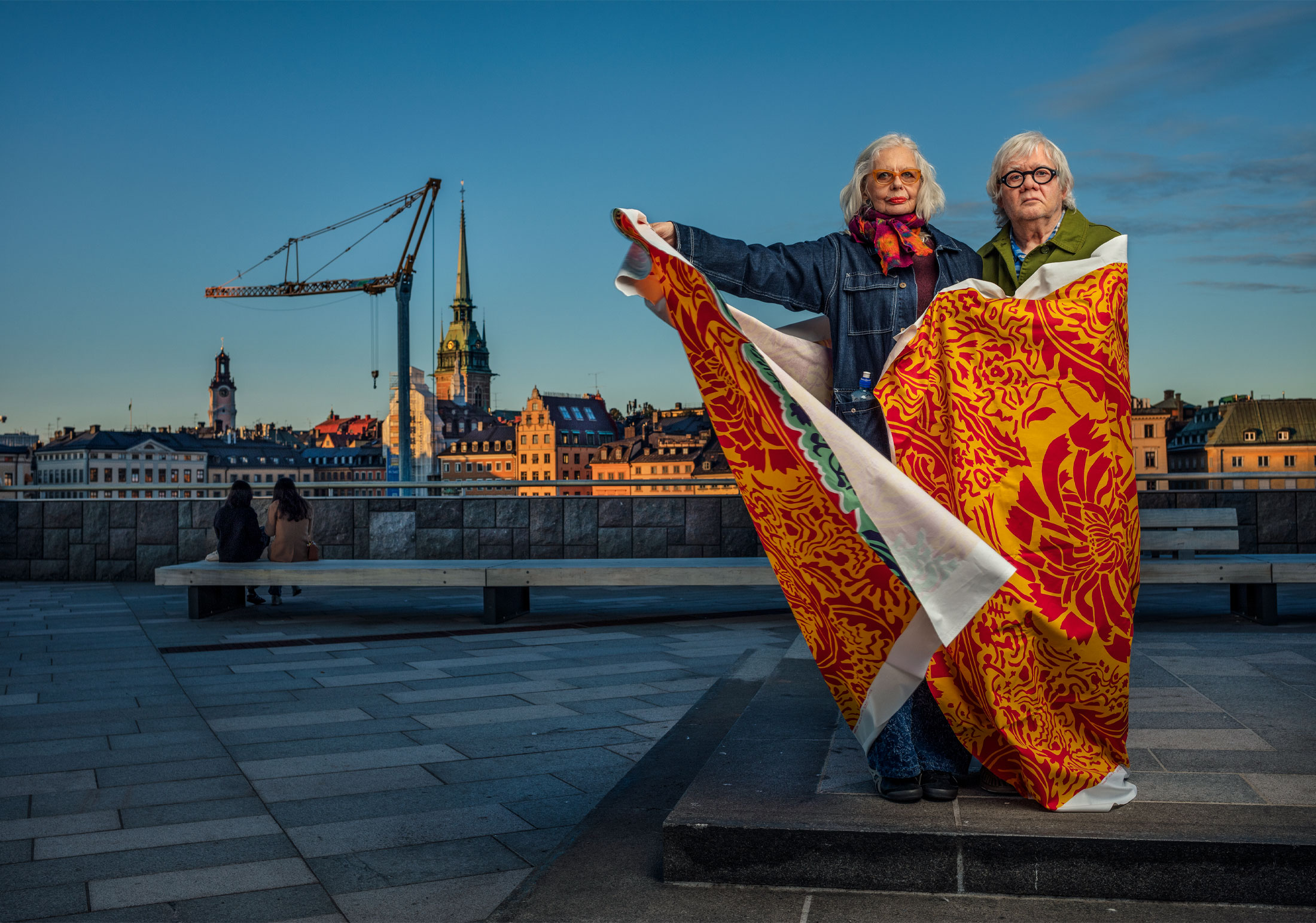 Paret De Geer insvepta i tyget Dandelion som Carl Johan designade i början av 60-talet. // Foto: Thron Ullberg